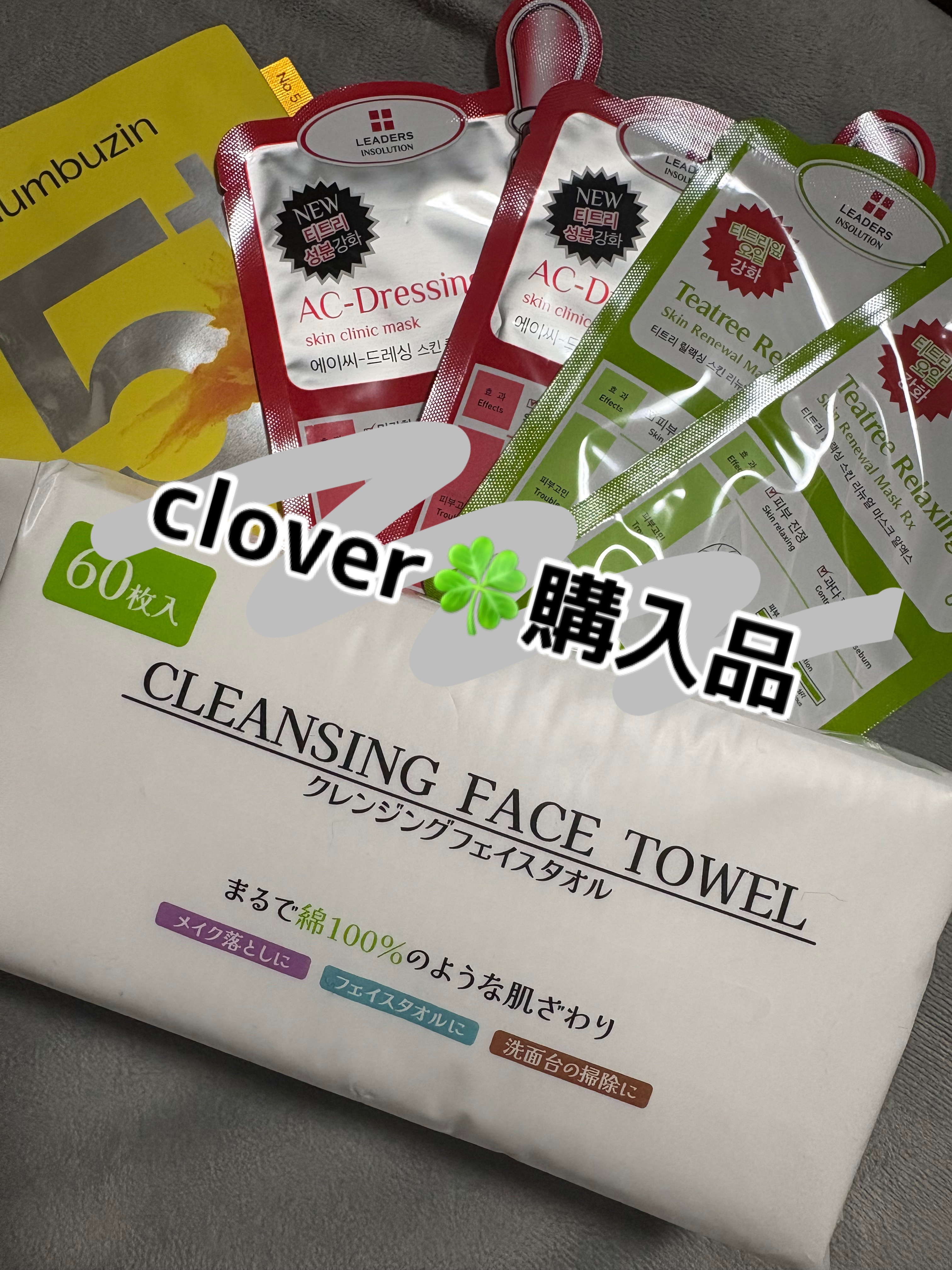 _#クローバー購入品見たことないものがたくさんあってみてて楽しかったーー!leadersのマスクは使うの初めてだから楽しみ☺️😊#LEADERSAC-ドレッシングスキンクリニックマスクティーツリーリラックシングスキンリニューアルマスクあとは おなじみの#numbuzin5番白玉グルタチオンCふりかけマスク#クレンジングフェイスタオルはとても使い心地良い!60枚入りでたっぷり使えそう〜たしか300円くらいだったかなー。またアイテムごとにレビューします⭐️────────────#購入品 #クローバー #コスメ#スキンケア #パック #フェイスマスク