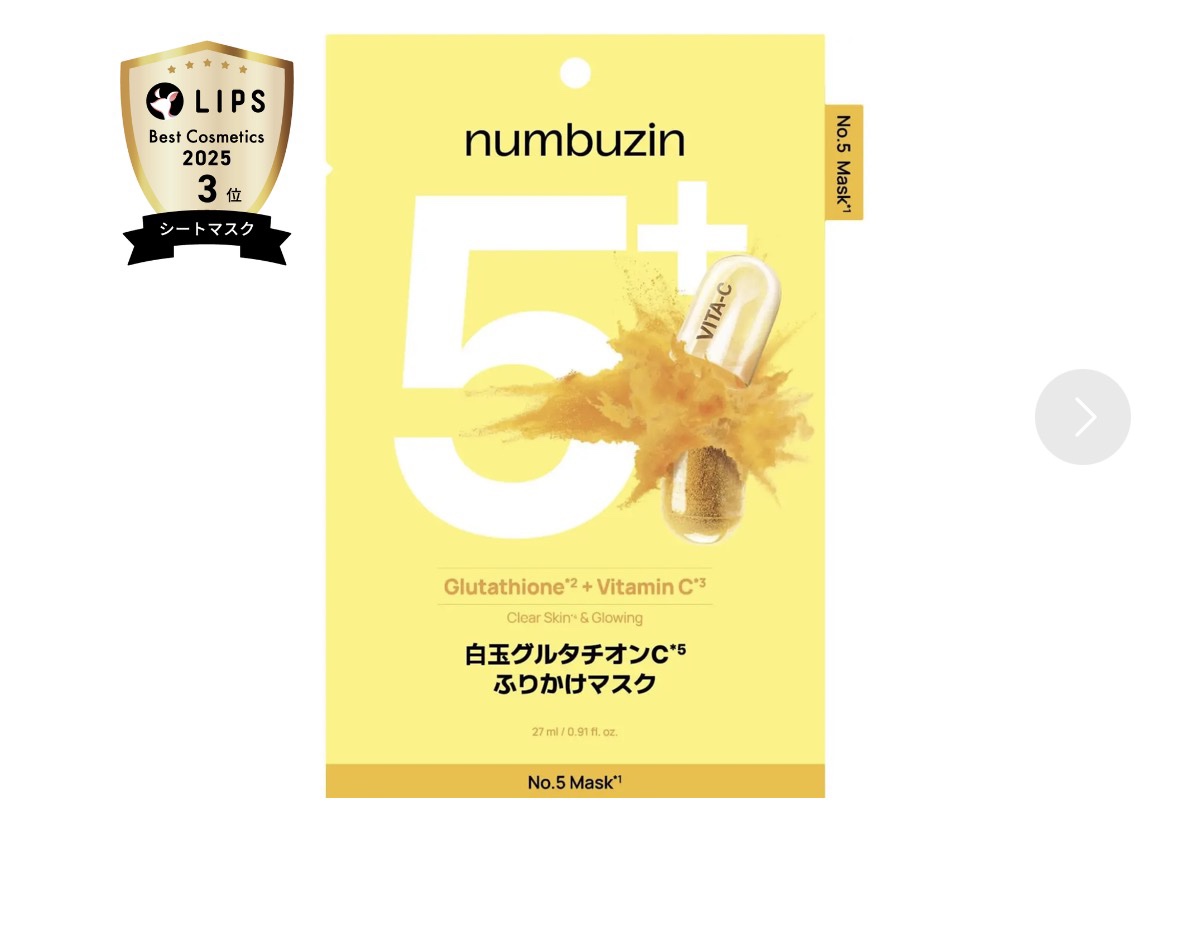 関連する記事numbuzin(ナンバーズイン) 5番 白玉グルタチオンCふりかけマスク 1枚