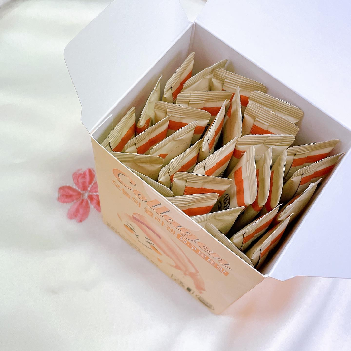 吸収率高い超低分子コラーゲンパウダー 個包装だから持ち運びにも便利で出かけ先でも手軽に飲めるのが魅力 水サラサラで細かい粒のパウダーで口に入れて噛むとサクサクして、その後すぐに溶けるので水なしでも飲めました◎ 甘い物が食べたい時にコラーゲンも摂取できるなんて一石二鳥! 個包装だから、出かけた時も持って行けて、サッとコラーゲン摂取できるのがいいなと思いました‼︎