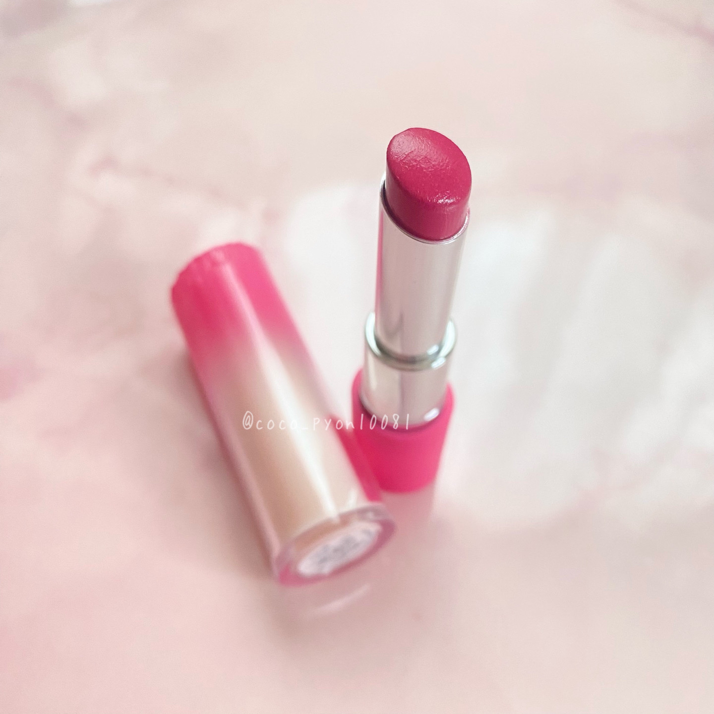色落ちがしにくく、ベタつきがないので とても使いやすく、もうすでにお気に入りの仲間入りに🩷 1番気に入ったポイントは色落ちがしにくく 1度塗ると崩れにくいところ✨ 初めて見た時もツヤツヤ感を感じたのですが、 実際に塗ってみると伸びが良くて 塗りやすさバツグン!