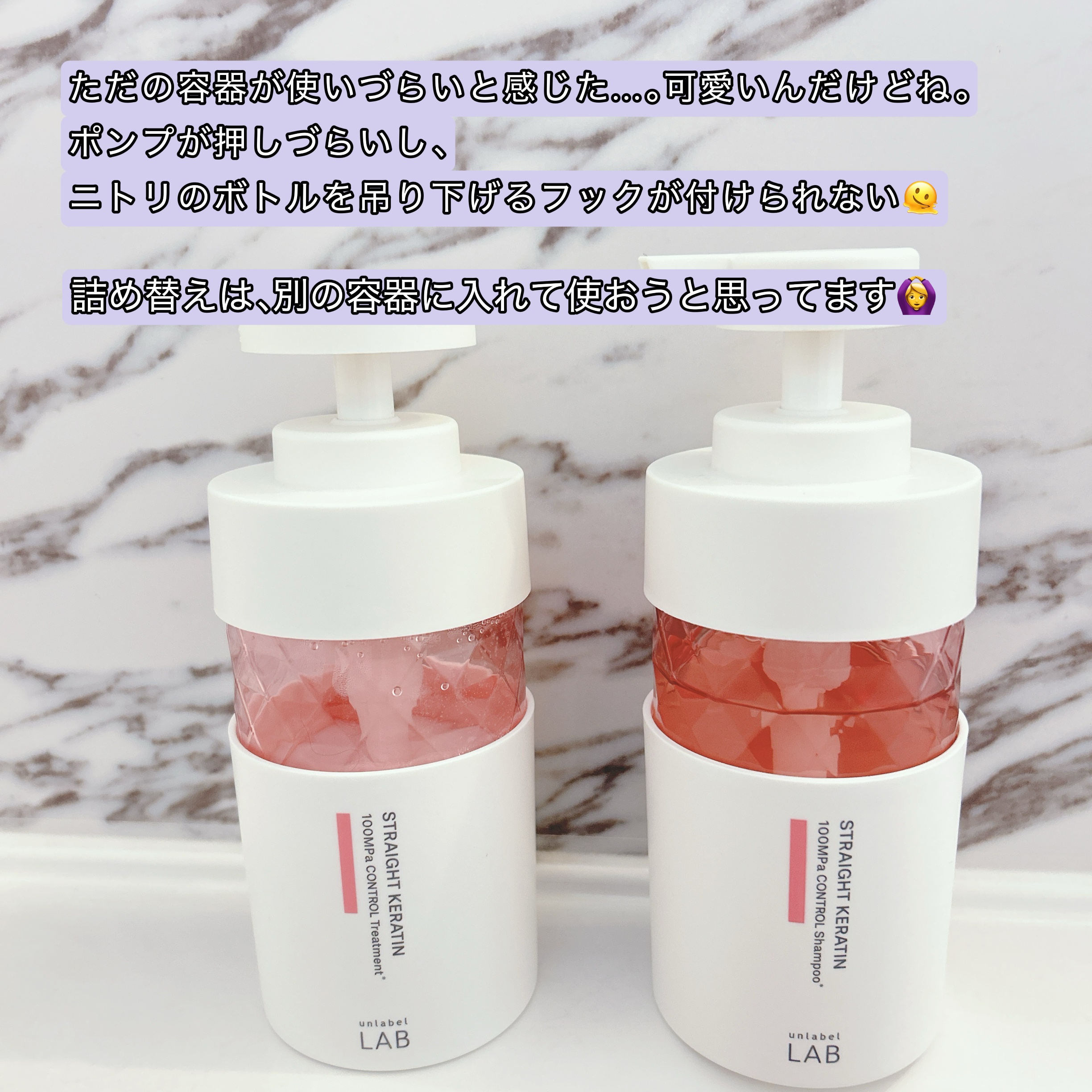 \大人のうねり髪・ツヤ不足に集中アプローチ‼️/アンレーベルからピンクのくせ毛ケアタイプが新登場🩷**ꕤ︎︎unlabel────────────アンレーベルラボKRコントロールシャンプー/トリートメント400ml各1,650円(税込)クチコミでも評価の高いアンレーベルからうねり集中対策ヘアケアをコンセプトにした『コントロール』シリーズが新登場今度はスタイリッシュで可愛いピンクのパッケージ🩷美容系YoutuberのかずのすけさんもSランクシャンプーとして紹介されていたのでかずのすけ買いしてきました👛⌇商品の特徴⌇超高圧*¹浸透型ストレートケラチン*²配合ケラチン*²の濃密泡で大人のうねり・くせ・ツヤ不足な髪を補修きめ細やかなクリームのような泡立ちで頭皮・髪の汚れをすっきり落としきらめくまっすぐサラ髪に導く集中美容液シャンプー(公式サイトより)かずのすけさんによると、アンレーベルの中でもカラーやアイロンの熱ダメージなどダメージケアに注力したシャンプーだそう🙆♀️主成分がアミノ酸系の洗浄成分になっているのでしっとり優しい洗い心地を求める方におすすめ🌿⌇私の髪質⌇細い、少ない、柔らかいの三拍子が揃った猫っ毛タイプ短い時は外ハネしやすくロングになると毛先にうねりが出てくるインナーカラーを入れるために一部ブリーチしていて髪のダメージに差があるため、とても絡まりやすいです💦⌇使用感⌇┊︎シャンプー固めのテクスチャーかなと思いきや泡立てるともちもち質感の泡が気持ちいい🩷軽い洗い心地ですっきりと洗い流せるきしみはしないけど絡まりはほどけにくい△┊︎トリートメントやや固めでこっくりとしたテクスチャー髪の表面にのこらずにすーっと馴染んでいって洗い流したあとはしっとりまとまってくれる⌇香り⌇アップル、ピーチ、カシスのフルーティな香りにマグノリアやローズの清潔感が混ざった『グリッターローズの香り』🌹どちらかと言うとかなり甘い系の香りですシャンプーの方が特に甘い香りが強めでトリートメントの方がこころなしか爽やかに感じました彼ウケはイマイチだったので男性や香りに敏感な方だと苦手かもしれません💦⌇良かったところ⌇軽いうねりなら乾かしたてはもはやストレート‼️1本1本がサラサラで軽やかなのに毛先はちゃんとまとまってくれる髪がうねってふわふわと広がりやすい方におすすめ翌朝も乾かしたてと比べると少しくせが出たもののサラサラ感は持続してくれて扱い易い香りがそこまで持続しないのでヘアオイルを使っても香りの邪魔をしないのが◎ヘアオイル無しでも十分ツヤのある髪になる⌇イマイチなところ⌇スタイリッシュなデザインのボトルだけれど使い勝手が❌ポンプのノズル部分が短いので出す時に手のひらに乗せ辛いなと感じました💦また、口の形が四角形で広めなので液だれしやすい点も気になりました😞⌇こんな方におすすめ⌇︎︎︎︎︎︎︎☑︎︎髪のうねり、ツヤ感のなさが気になる︎︎︎︎︎︎︎☑︎︎サラサラでまとまりのある髪になりたい︎︎︎︎︎︎︎☑︎︎ヘアカラーやヘアアイロンによるダメージが気になる︎︎︎︎︎︎☑︎フルーティで甘い香りが好き私の髪には合ってるなと感じたけれどボトルが残念すぎるのでリピートするなら詰め替えタイプを買ってボトルは別のものにするかなあ…🤔💭皆さんもぜひ試してみてください🤗🩷少しでも参考になりましたら幸いです🍀*¹超高圧加工処理装置を用いた原料*²超高圧処理したイソステアロイル加水分解ケラチン(羊毛)(補修成分)────────────#unlabel#アンレーベル#シャンプー#トリートメント#市販シャンプー#ドラストシャンプー#ケラチン#ダメージケア#うねりケア#褒められヘアの作り方