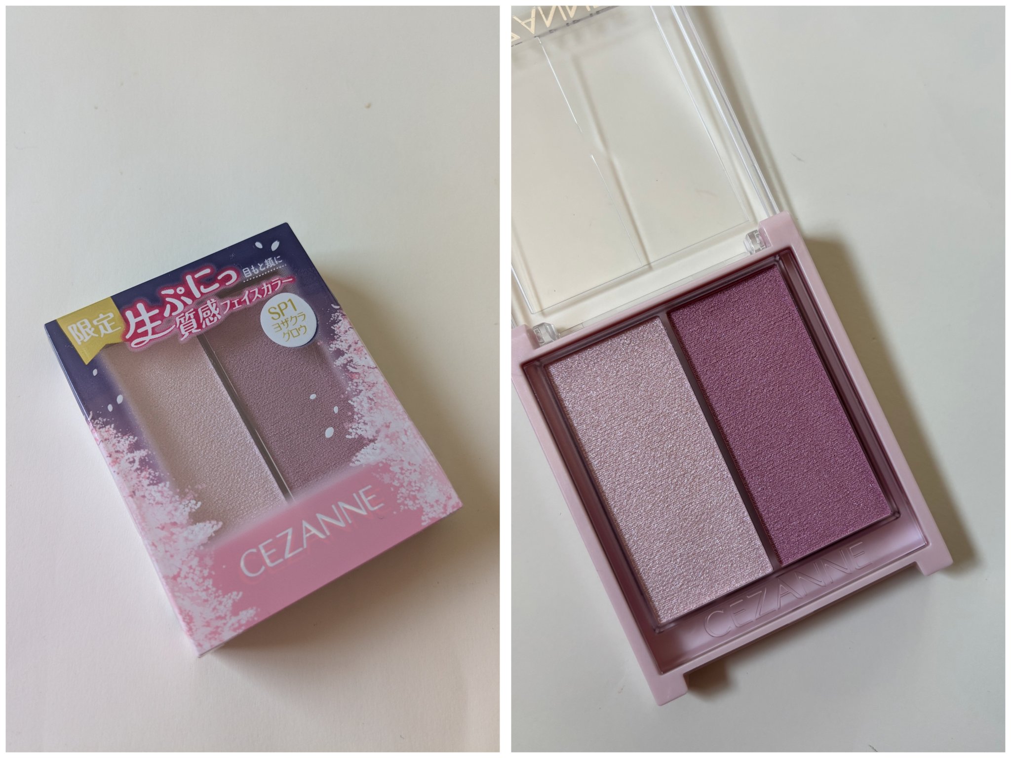ぷにっとした心地よい触り心地と、実際に肌にのせた時のサラッと感がやっぱり【CEZANNE フェイスグロウカラー】は最高✨ チークカラーは白っぽいピンク!💕 キラキラ綺麗な乙女~~!!みたいな、ディズニープリンセスのオーロラ姫が使ったら絶対似合いすぎるだろうなって感じの綺麗&可愛い色味🌹💕 ハイライトの方は反対に白にピンクを足したような色味! 黄みはあんまりなくて、頬につけると上品にピンクが分かって良き...!