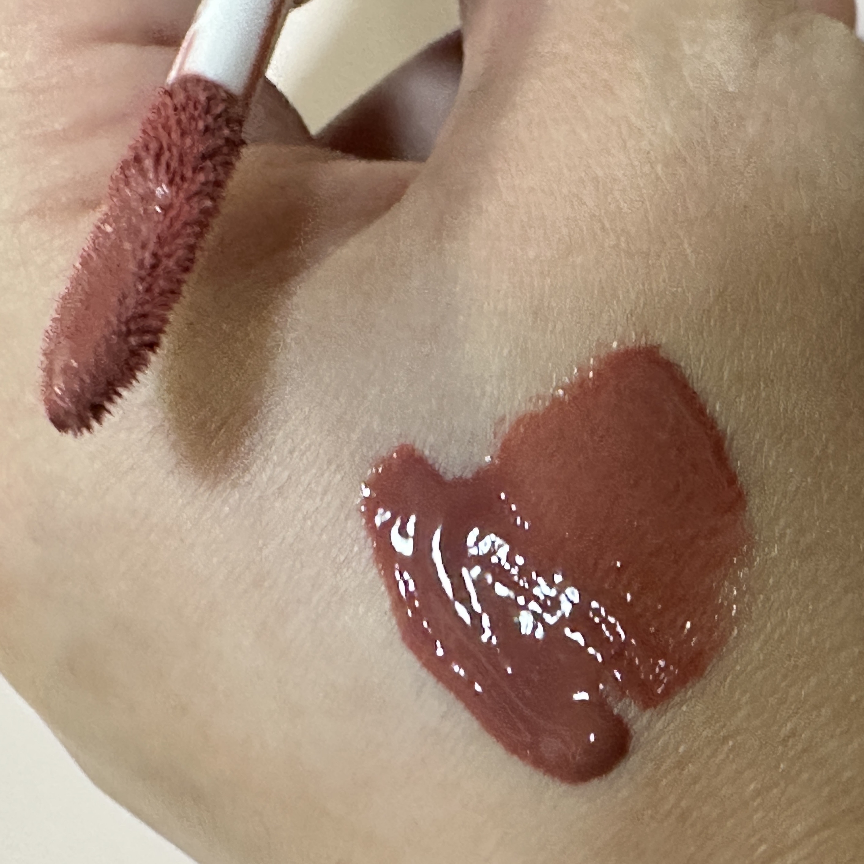 塗ってみたらこれまたかわいい色💖 くすみががった色味だったため、イエベの私でも使えそう!!!!🫶🧡 プランパー効果もあり、少しスースーしますがピリつく痛みなどはない印象! ぷっくり唇でちゅるちゅるになれたかも🙌🌼