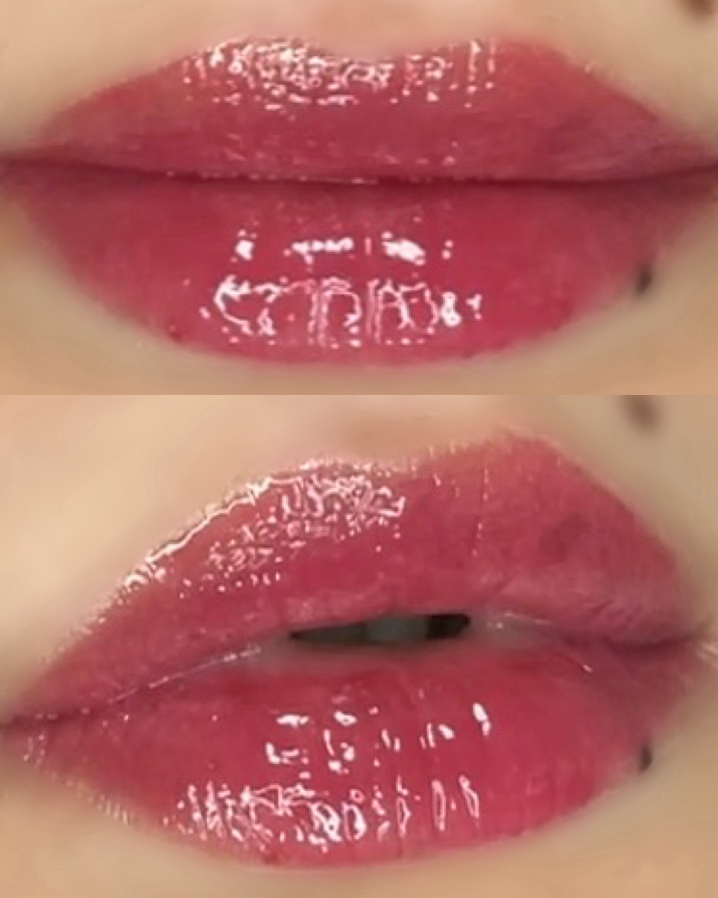 時間が経つとツヤが増してぽってりした仕上がりに! 時間が経つと塗りたてより赤みと濃さが増すと感じました。 23のような明るめのカラーは特に落ちやすいです。 香りは甘めなので苦手な方は注意! 特に今回のクローバーパケはすごく刺さりました🍀
