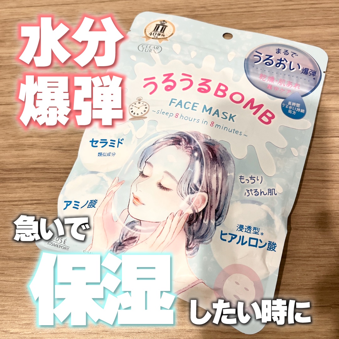 こんばんは🌙先日購入したうるうるBOMBマスクを使い切ったのでご紹介します!クリアターンうるうるBOMBマスク7枚入り定価¥660まず7枚入りで660円で購入できるのはなかなかコスパ良いかな?🤔とにかく乾燥が気になる方におすすめのマスクみたい...