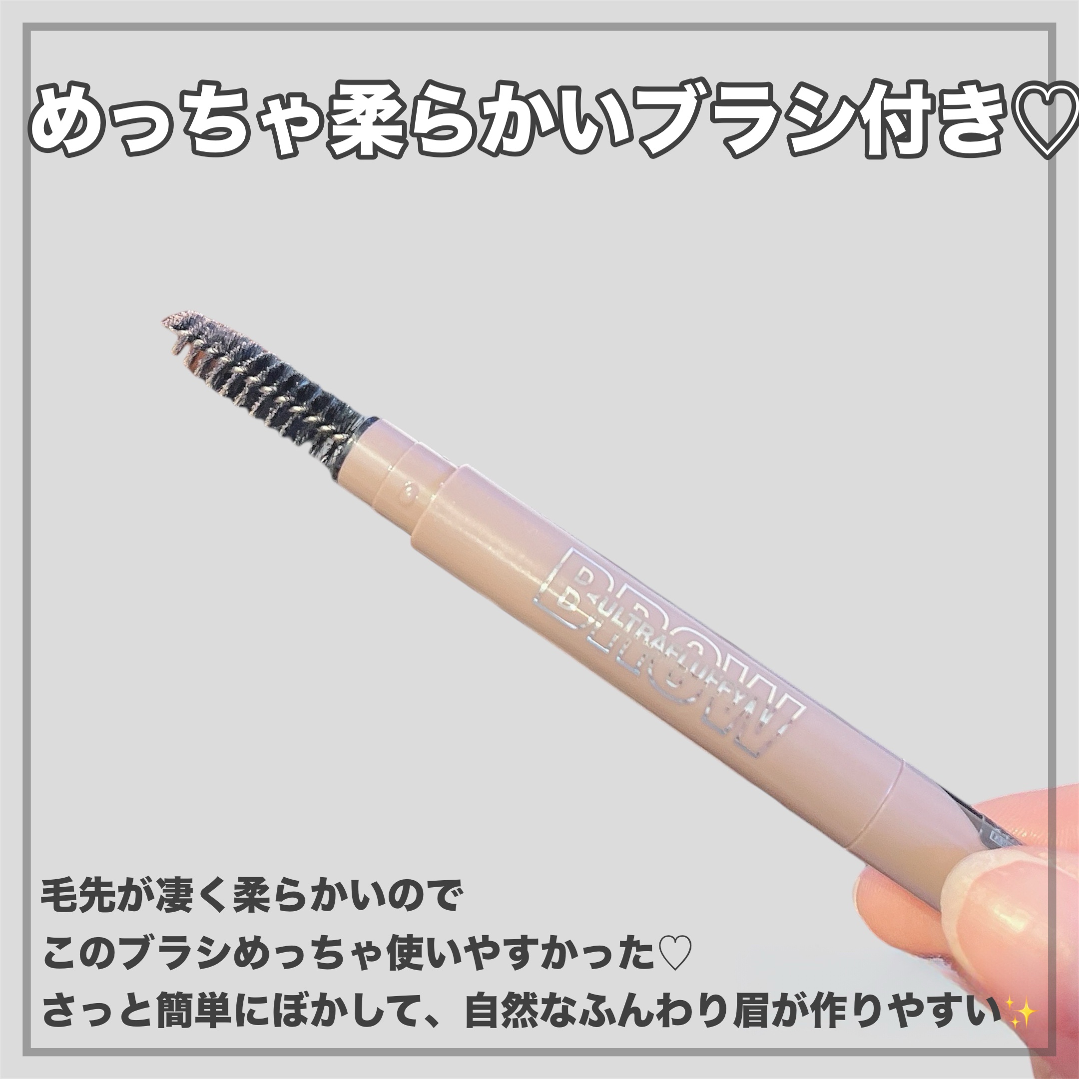 三角芯になっているので、細くも太くも描きやすくどんな眉の形の方でも使いやすい✨ 反対側にはブラシ付きになっているので、ふんわりぼかしてふわっと感をアップさせることができます☁️ メイベリンのファッションブロウ パウダーインペンシル Nは時間がない時でも手軽に綺麗なふんわり眉を作れるので私も大好きなアイテムです🫶