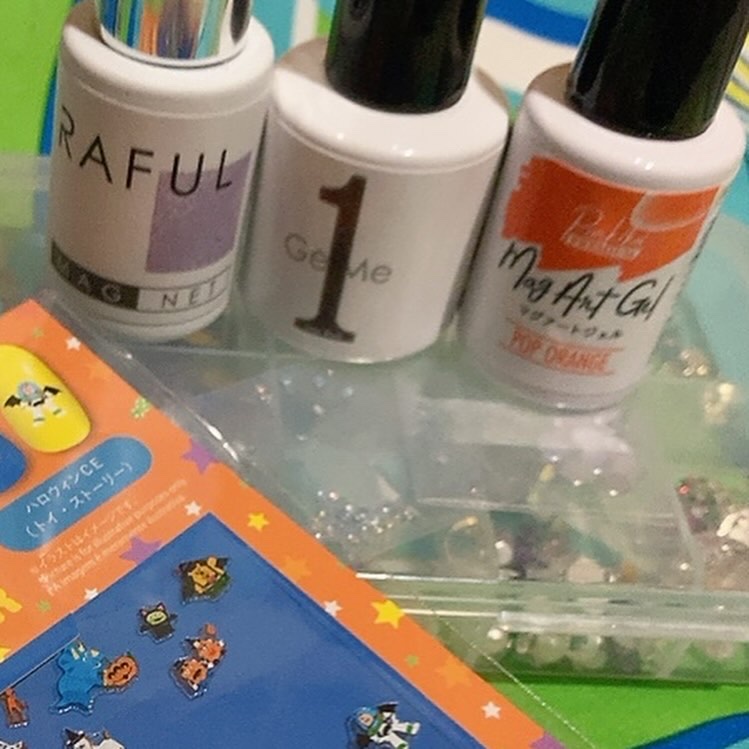 ダイソーのネイルシールを使って#ハロウィンネイル🎃💅ベースは安定のGelMe1そして、上にRAFULでマグネット加工🧲別の指はキャンドゥのマグネットジェルのオレンジ🧡これは本当に発色が良い🙆一度塗でもキッラキラ✨そして、ネイルシールをアレンジ。ちょっと盛りすぎた😂が、可愛いということにしよう💅みなさまも是非#ジェルネイル#ジェルネイルデザイン#セルフジェルネイル#ハロウィンネイル#100均ネイル#ダイソー#キャンドゥ#gelme1#raful