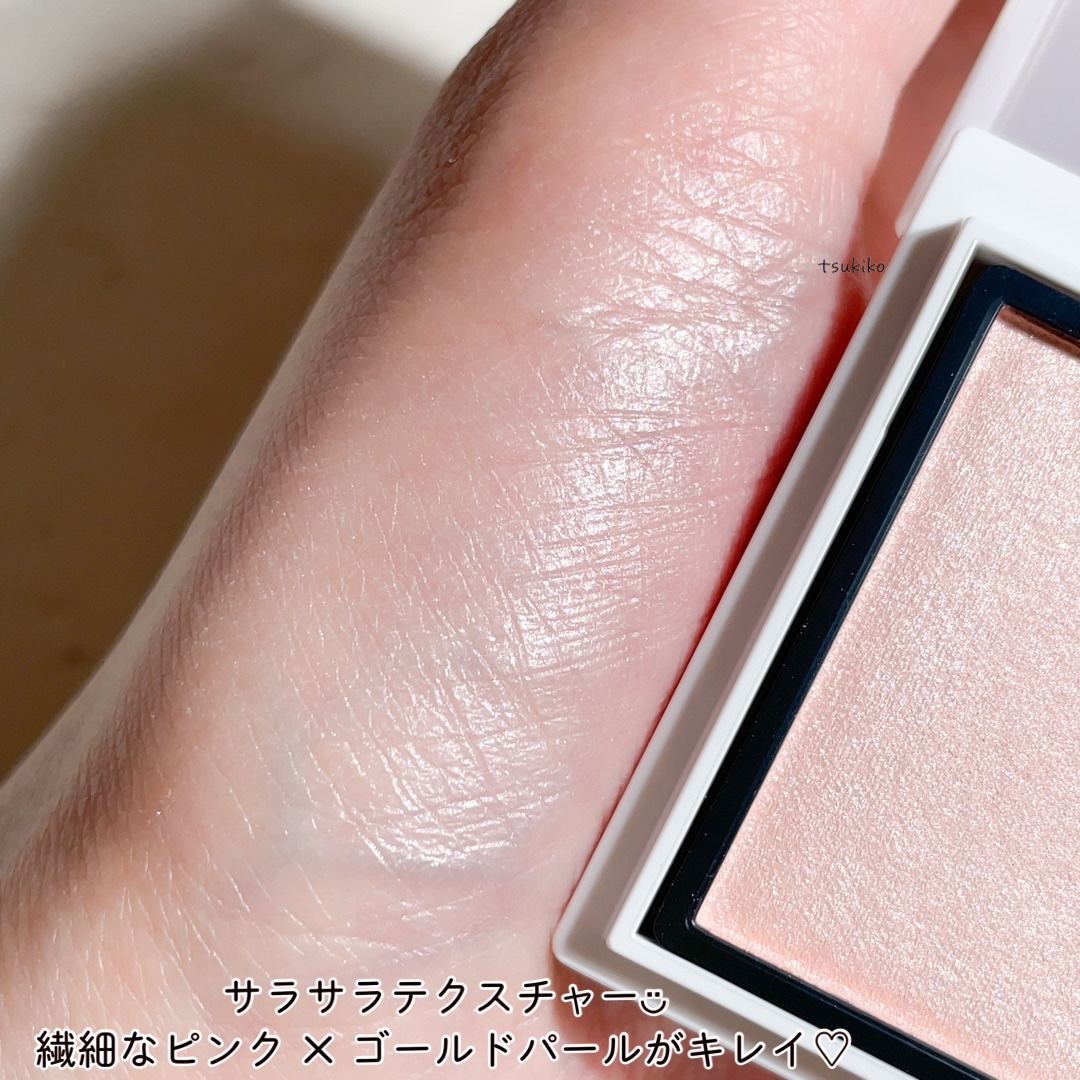 パールが細かくてギラつかず、白浮ぜず、目元を明るく仕上げられてとても良い❣️ ピンク・シルバー・ゴールドのパールが配合されているそうで目に見えてはっきりとは分からないですがこれが絶妙で透明感を出しつつ、肌が発光しているようなつやつやな仕上がりに!