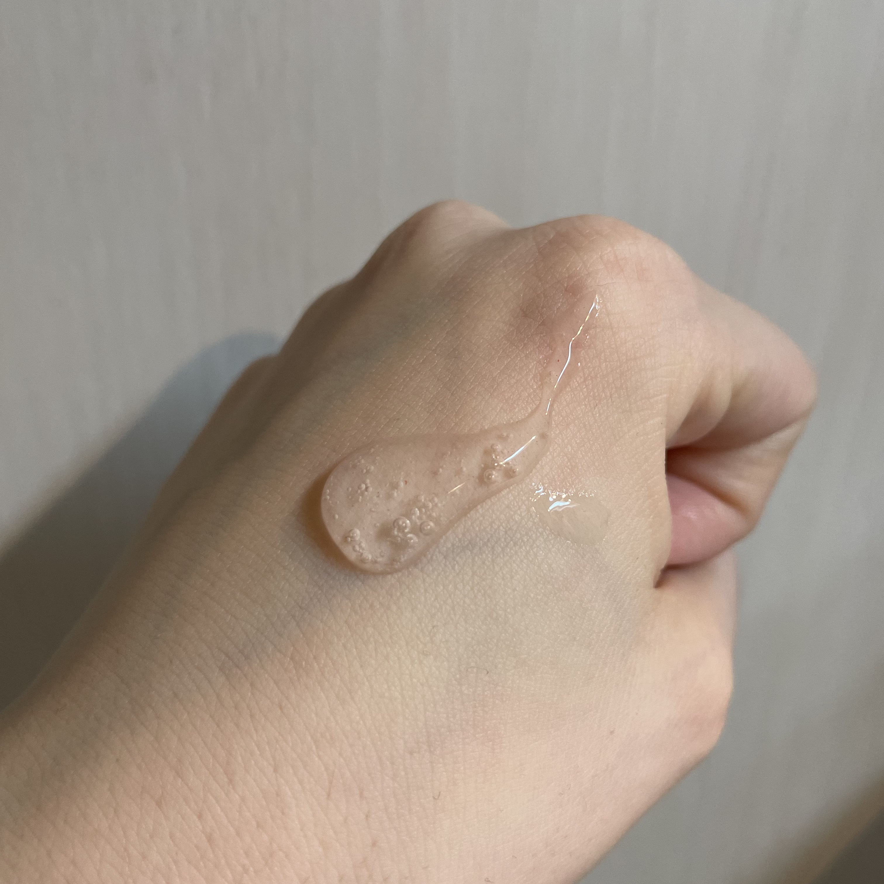 レチノール粒が配合されてて赤いプツプツが入っています! ジェルっぽいとろみのあるテクスチャですが 伸ばすと伸びはよくみずみずしさもありつつ、しっとりした感じがします! があってパックしたような保湿感があります😵