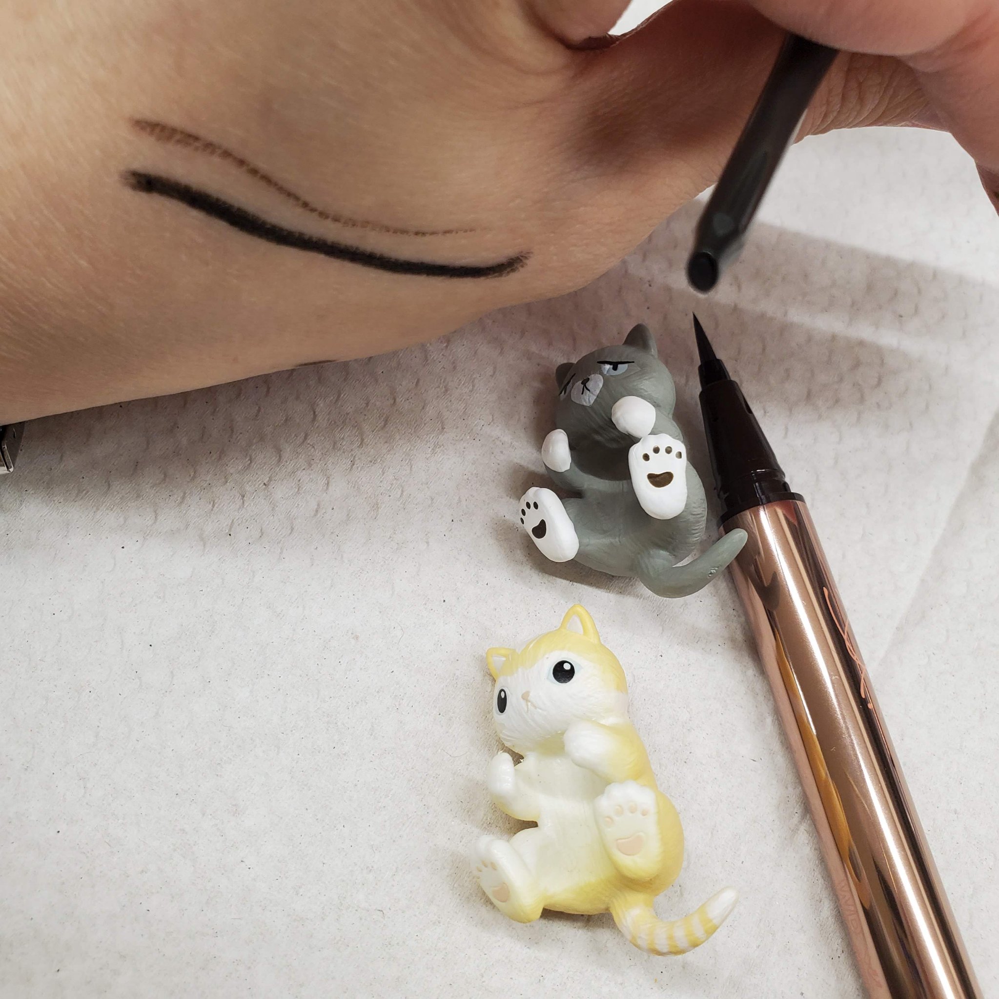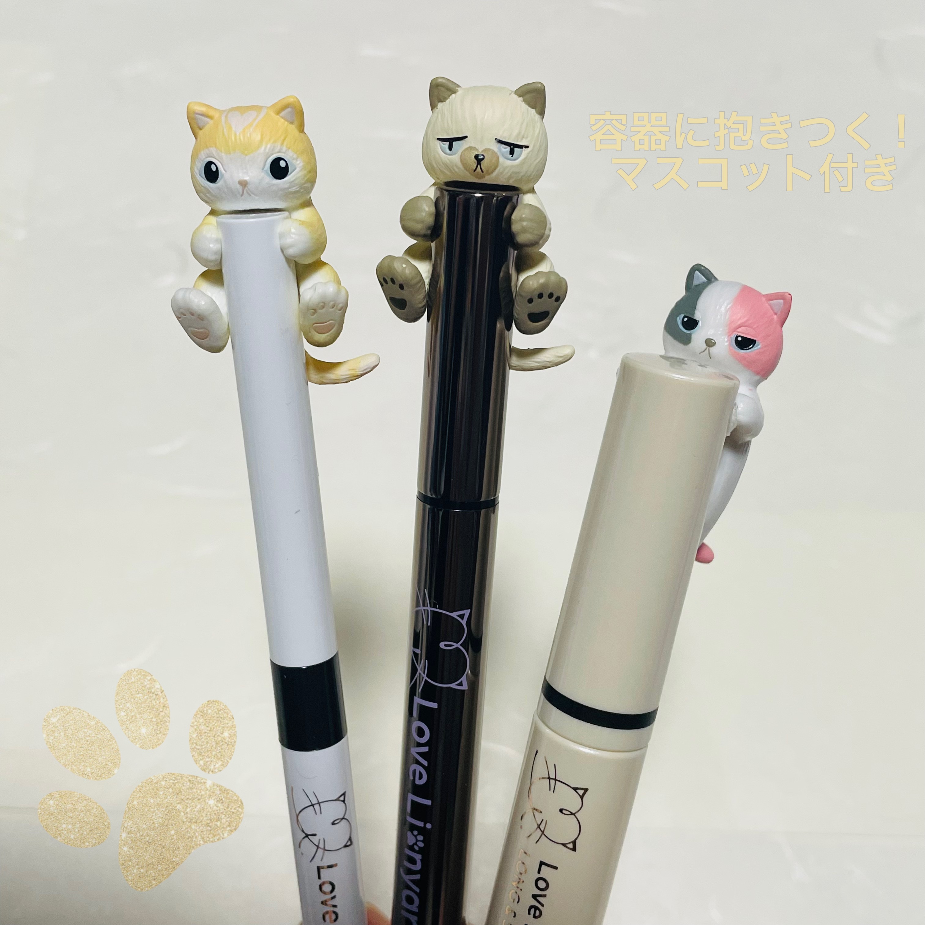 おなじみラブ・ライナーの猫ちゃんバージョンラブ・ライにゃ~ クリームフィットペンシル<アイライナー>お値段そのまま猫ちゃんパッケージと猫ちゃんマスコット付き♥️猫ちゃん可愛い♥️柔らかく書き心地のよいペンシルライナーなのでスルスルと綺麗にラインが引けました。楕円状のペンシルなので太くも細くも変化をつけやすい。また、思った以上に落ちにくく定着すると擦っても簡単には落ちませんでした。柔らかいので折れには注意ですが、これで1320円はお得✨️#ラブライナー#ラブライニャー#ペンシルアイライナー#アイライナー#限定パッケージ