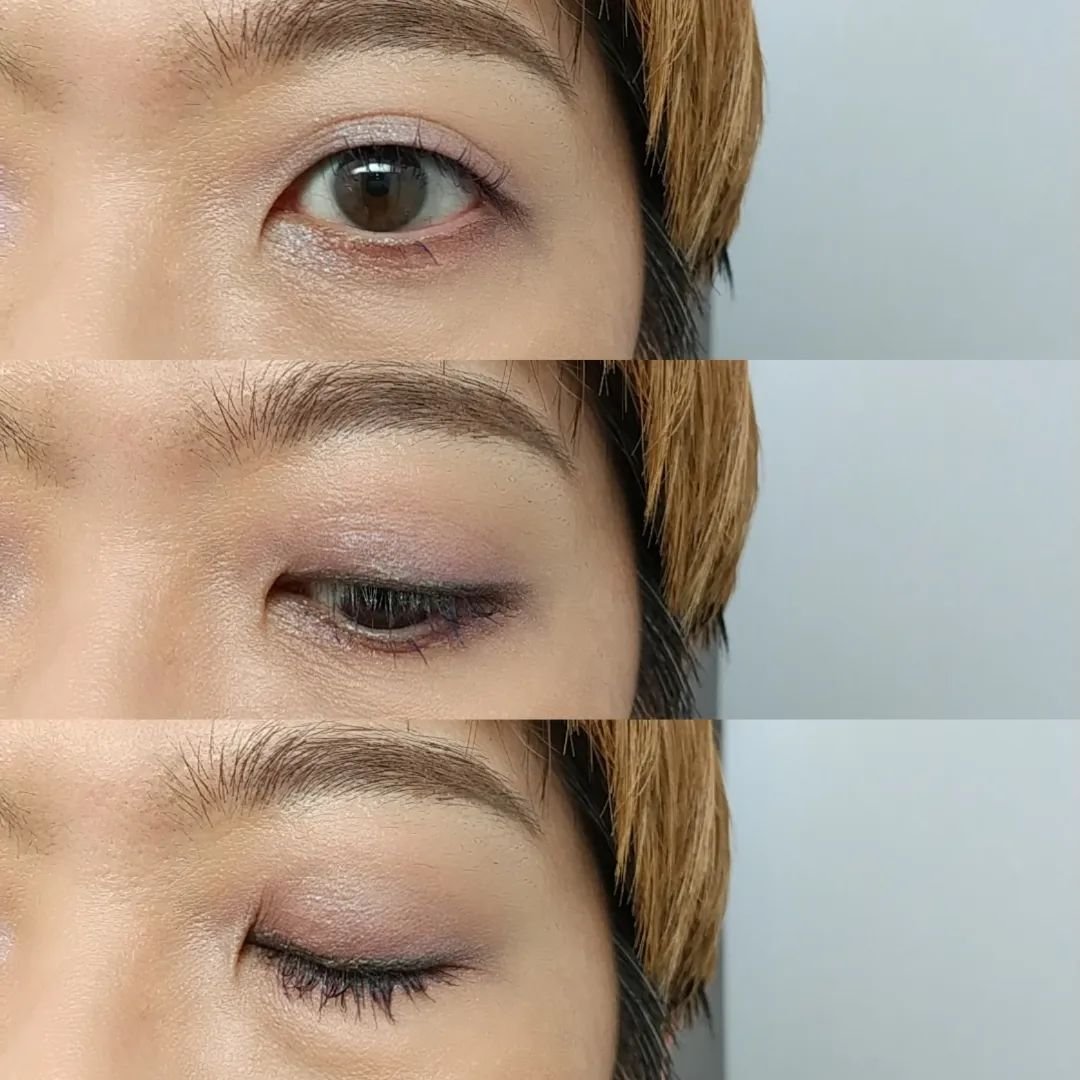 乳⽩⾊と淡いピンクの煌めきが自然な⾎⾊感とツヤ感を与えてくれる🥺✨ ピンク、パープル、ブルーの微細なパールがめっちゃ綺麗😭👏 粉質も柔らかくしっとりめなので肌にピタッと密着してくれる! なにより透明感もアップして顔色が明るく見える🤍🤍 スルッと滑らかに塗れてピタッと瞼に密着。 なのでぼかす際は急がないといけない😂💦笑