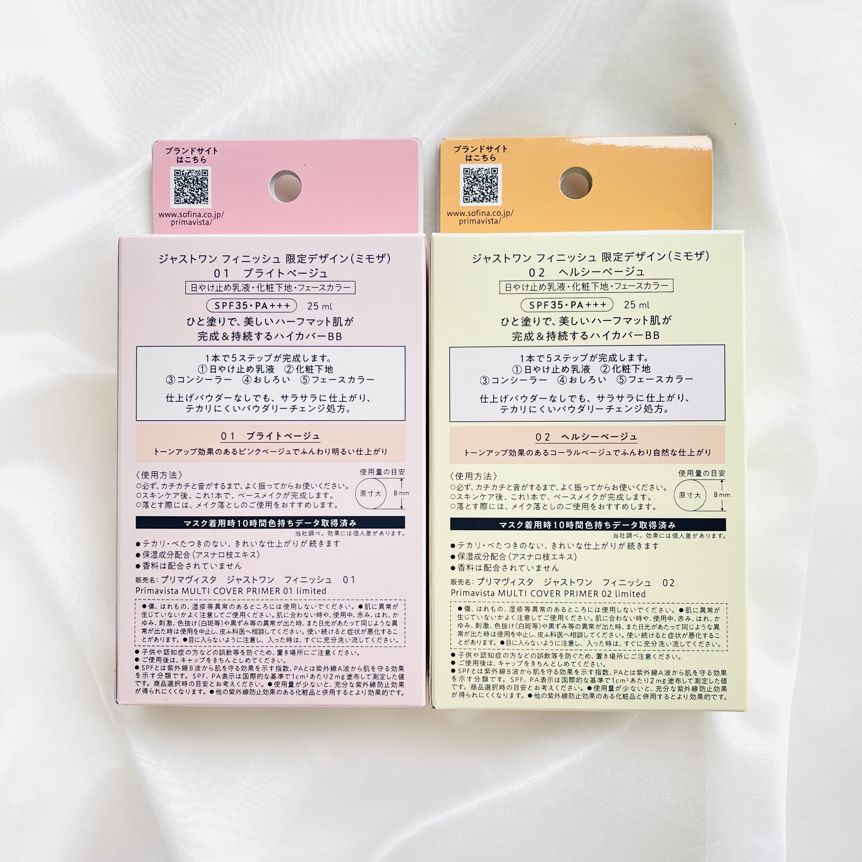 ジャストワンフィニッシュは 1本5役のBB ①日焼け止め②化粧下地③コンシーラー④おしろい ⑤フェースカラー 01はピンクみがありブルベ肌さんにはもちろん 夕方なんだかくすむなぁ🤔なんて方にも オススメ♡ 02は黄みがありイエベ肌さん、ヘルシーに見せたい方に🙆♀️