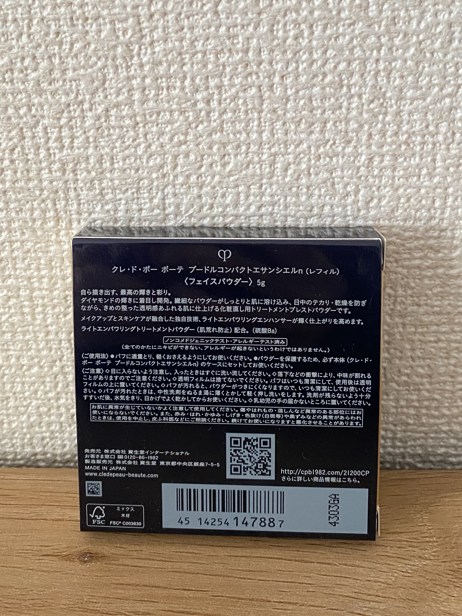 クレ・ド・ポーボーテプードルコンパクトエサンシエルn5g¥12,100・クレ・ド・ポーボーテのフェイスパウダーのレフィルです!・パフ・ケース付きを購入したのですぐなくなりそうだなって思ったのではやめにレフィルもストック分で買っておきました!(...