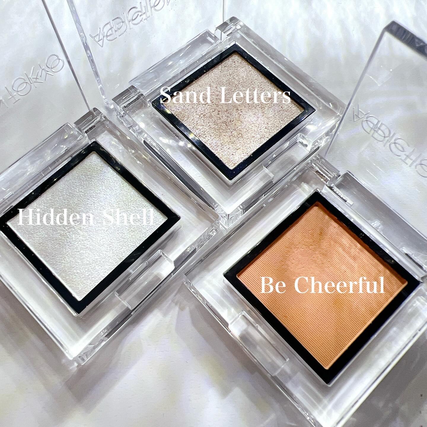 アメジストシー くすみカラー×キラキラで、上段の白ラメと青ラメのピンクがすっごくかわいい! サンライズタイド 元気なオレンジカラー。 イメージのモデルさんがこちらを使っており、そのルックに一目惚れし、同じように使いたい! ヒドゥンシェル 一見白に見えるけど、実はグリーンなオーロラグリーン。 PAUL & JOEで似たような色を持ってるけど、あまりにかわいいので予約せずにはいられなかった。