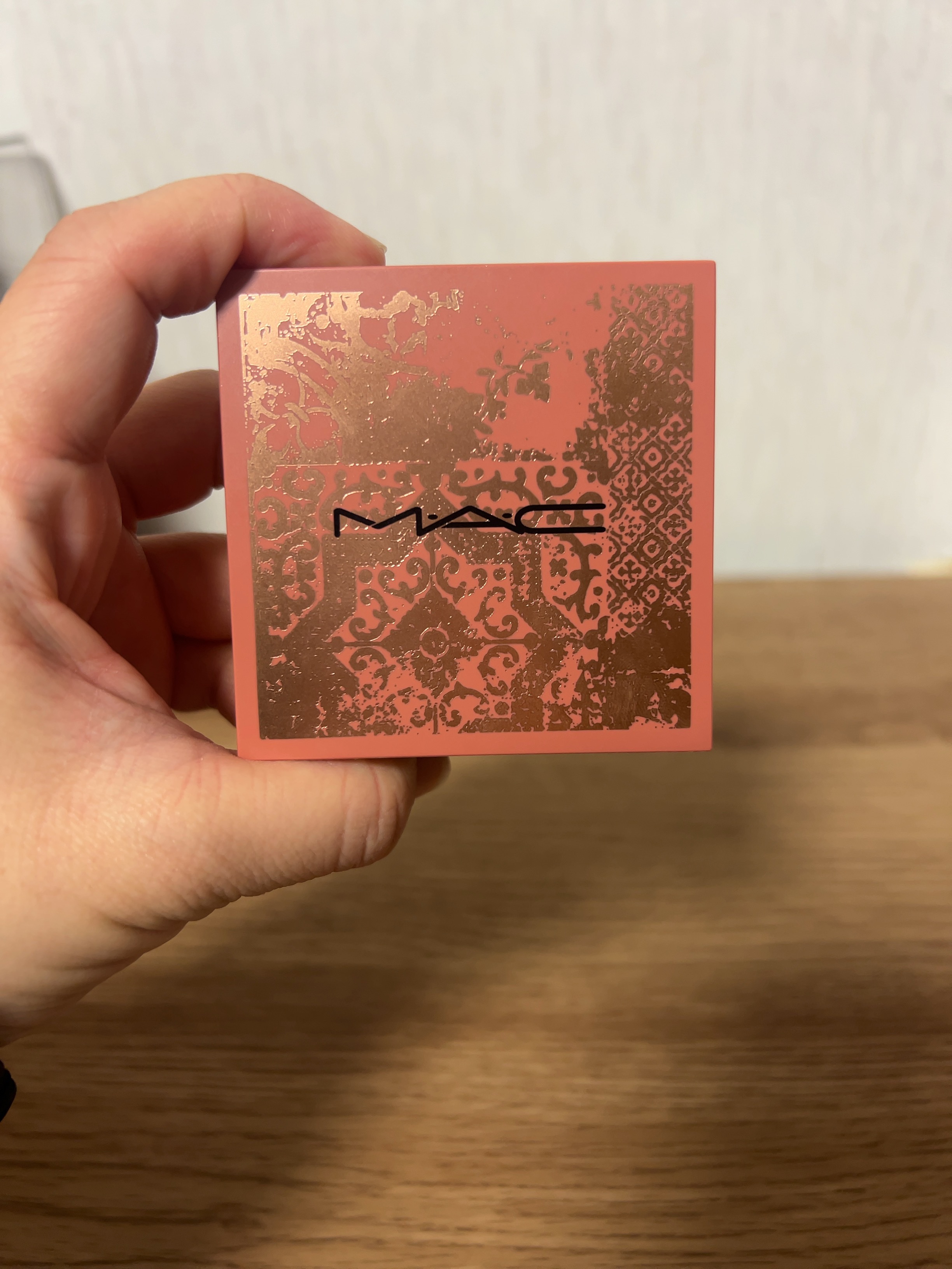 今日使ったやつ。2段になっててアイシャドウとチークが入ってる。デパコスで、コンパクトなのにこの画期的さはあんまりなくない?(どデカいパレットはよくあるけど)MAC使ったことないからって理由で、2色あるけど選べず2色買い。硬くてゴワゴワした手触りだけど、サラサラとしっかりまぶたにのる。淡い色をアイホールに、その他の色は似たりよったりの3色なのにちゃんとグラデと存在感出る。今日使ったディープはパープルがかったブラウンで大人の女性に仕上がってお気に入り。あたしは公式で購入しました。見た目も個性的なとこがMACだな~って感じる。