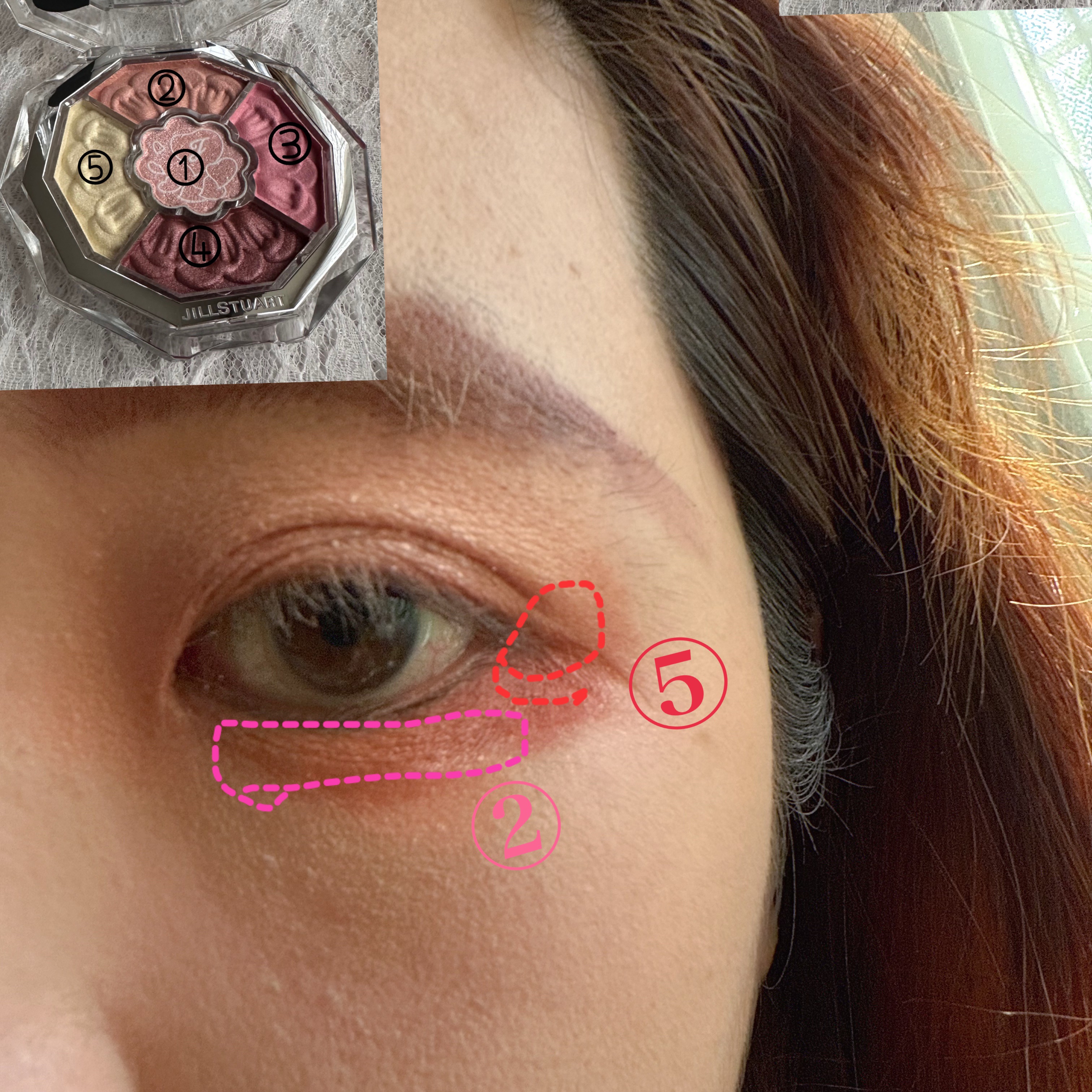 ______________________________ジルスチュアートブルームクチュールアイズジュエルドブーケ パステルペダルハーモニー08______________________________価格:6,380円(税込)いつもご覧いただきありがとうございます🐟今回はJILLSTUARTのブルームクチュールアイズジュエルドブーケパステルペダルハーモニー08を使ってアイメイクしてみました🥰❣️何回かこれを使ってアイメイクしてますが今回は違った方法でアイメイクしてみました💁♀️ではでは、、、⑤を上瞼と下瞼、全体に塗る。②を二重幅より少し上に塗る。③を目頭から黒目まで塗る。④を黒目から目尻に向かって塗る。⑤で上瞼の少し上をぼかす。①を目頭から黒目まで塗る。②を涙袋に塗る。④を下目尻に塗る。少しピンクみを強くさせて使ってみました!ブラウンを抑えてピンクメイクにしてみました🥰参考になれば嬉しいです☺️#JILLSTUART#ジル愛好者#ジルスチュアート#ブルームクチュールアイズジュエルドブーケパステルペダルハーモニー#アイメイク#いつかのアイメイク#アイシャドウ#アイシャドウパレット
