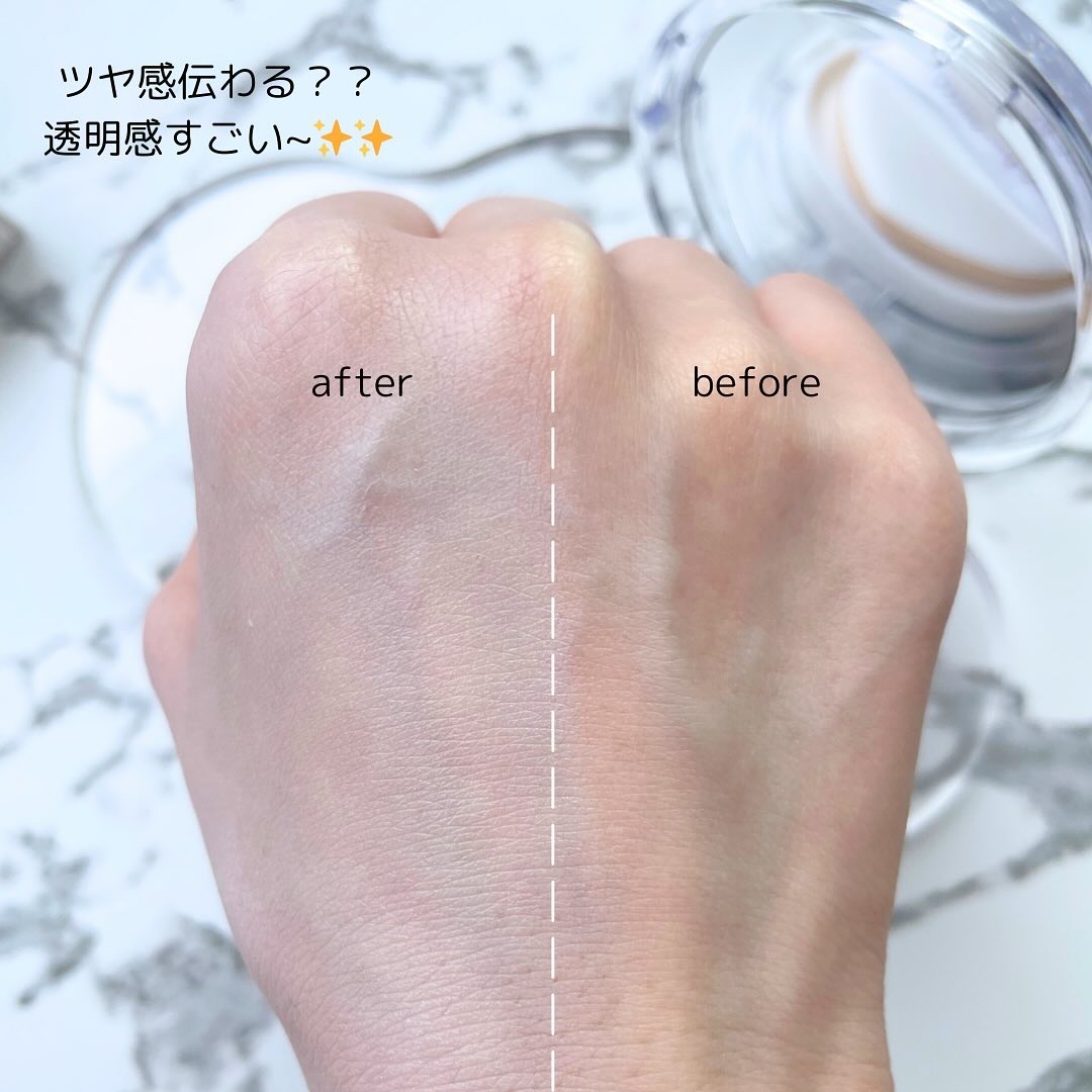 みずみずしい使用感で、冷んやり。 まるでスキンケアしてる感じ♡ クリアなツヤ膜で包んだような仕上がりになり しっかり潤いはあるけどサラサラ! とっても不思議✨ 自然なツヤ肌になり、若々しく見える。 日焼け止め&下地としてはもちろん メイク直しの時の塗り直しにも万能❗️