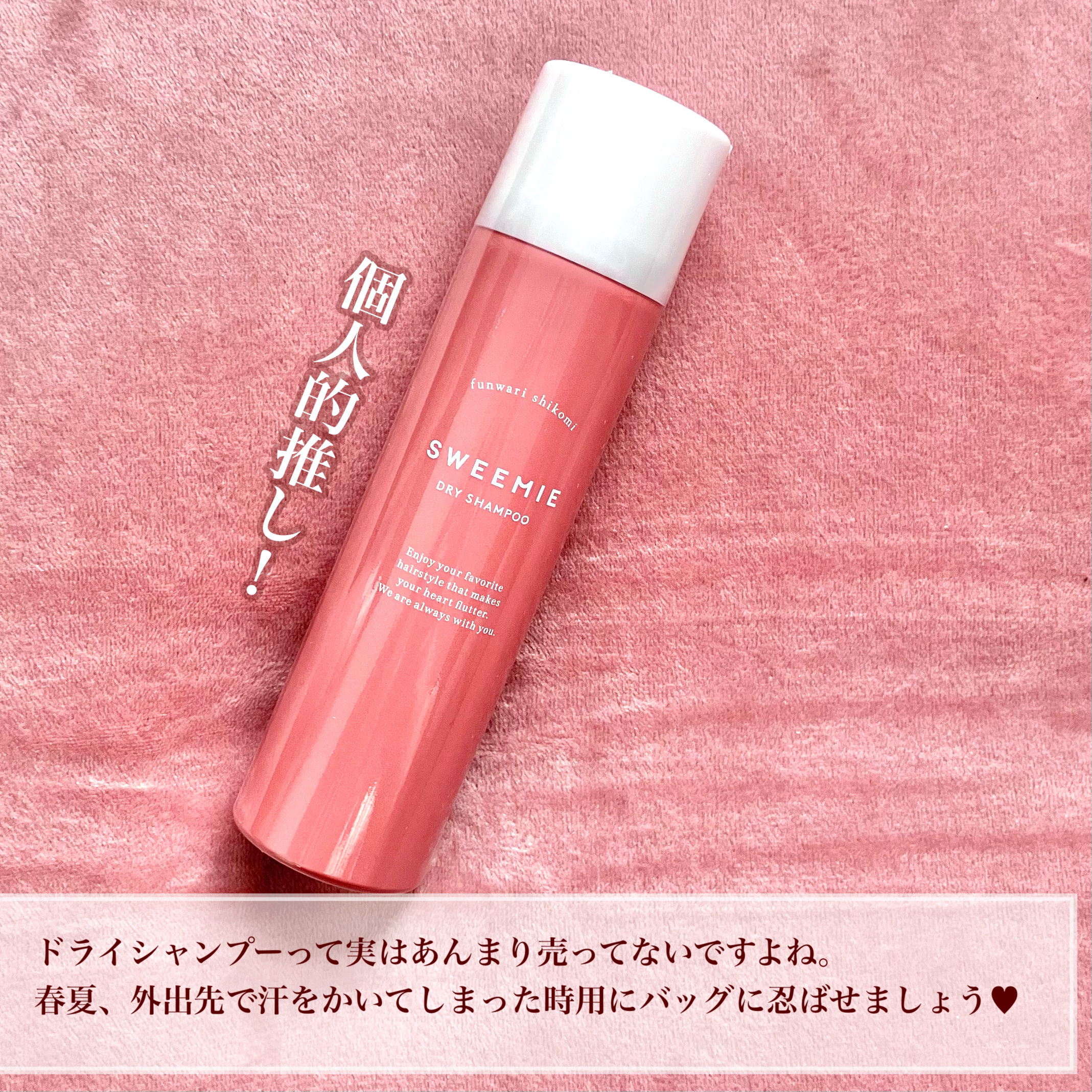 SWEEMIEって初めて知った❣️そんなにペタンコ毛じゃないんだけどトップがいつもよりふわっとして若く見える(髪って大事ね)甘さは控えめのリリー系の香りだから今使ってるSHIROのホワイトリリーのスプレーと相性抜群だた🙆♀️にしてもポンプ可...