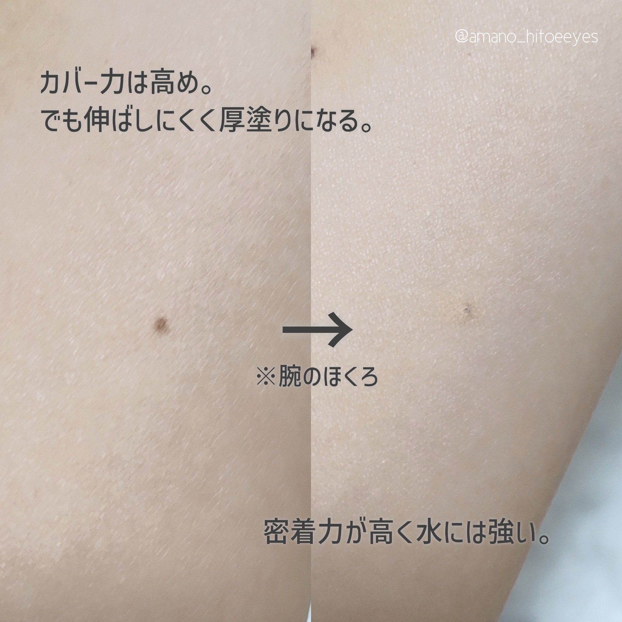 プチプラなのにハイカバーで落ちにくい💕 でも塗ってみると意外にサラサラ♡ その後のパウダーは塗らなくてもいいほど😊 シミなどの気になる箇所に スポット使いもいいし、 赤みの気になる所に広げてもOK🙆♀️ 日焼け止め効果もあるから頼もしい💪✨