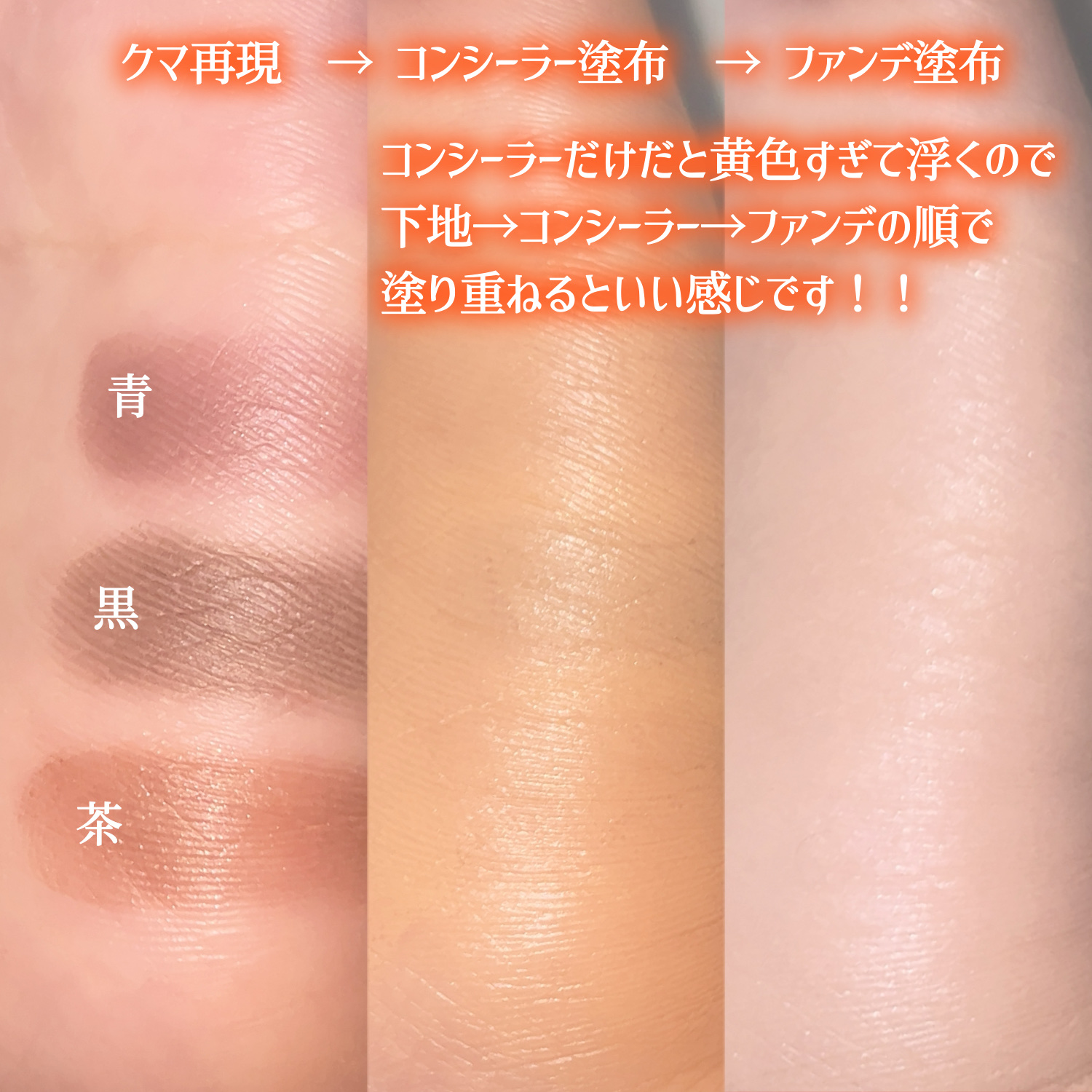 初めは期待してなかったのですが夕方になってもシミが隠れていてよれてなかったから驚きました😯❗ クマはオレンジベージュとライトベージュ両方使って今まで使っていたコンシーラーより隠れたしこちらも夕方になってもシワの入り込みもよれも酷くなかったです😊✨ やっとコンシーラー迷子から抜け出せました😂