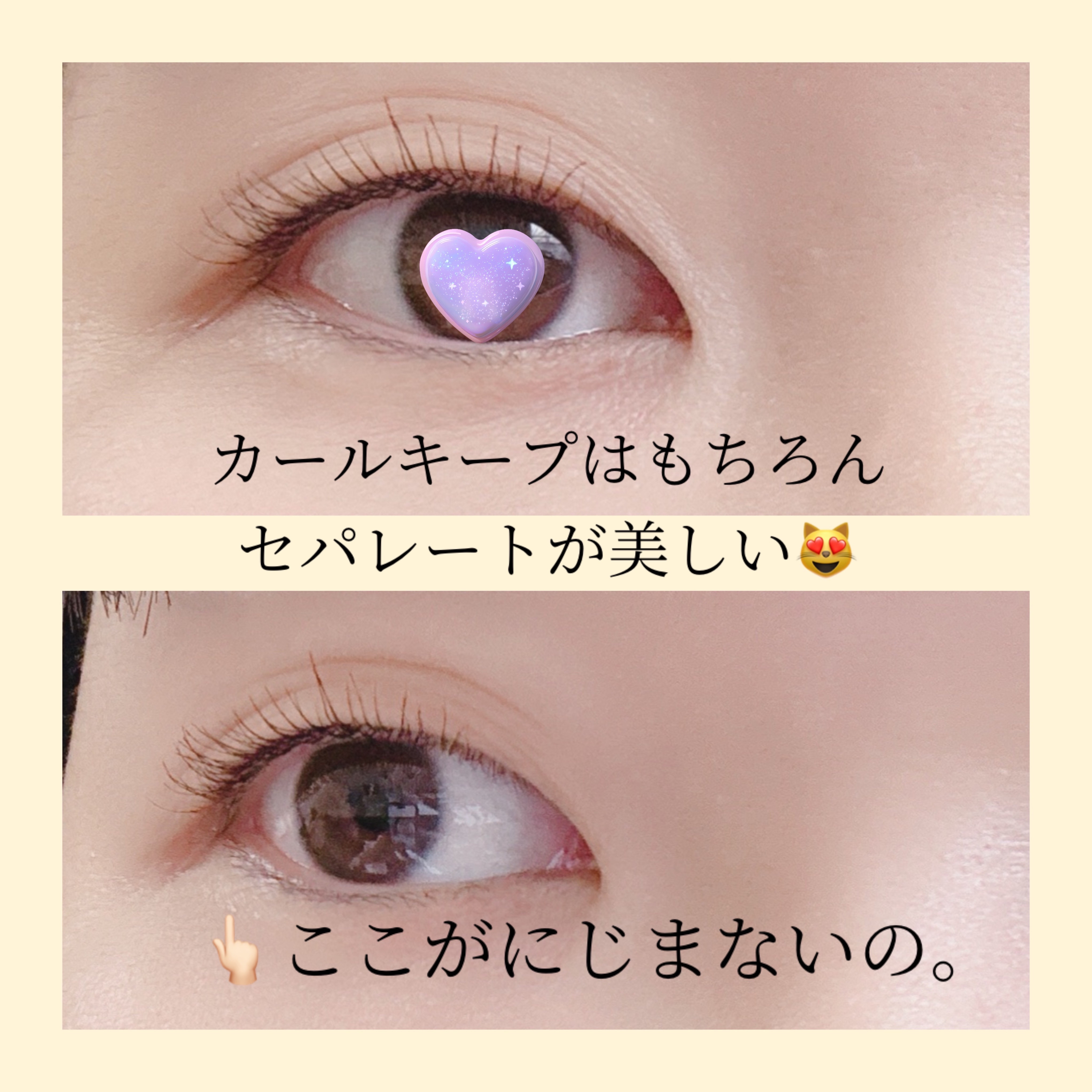 めちゃくちゃ軽い塗り心地なので まずマスカラの重みでカールが 下がってしまう事がない✨ しっかりロング感もあるのに 繊維フリーなのは嬉しいポイント🥹 仕上がりは繊細カールまつ毛!❤️