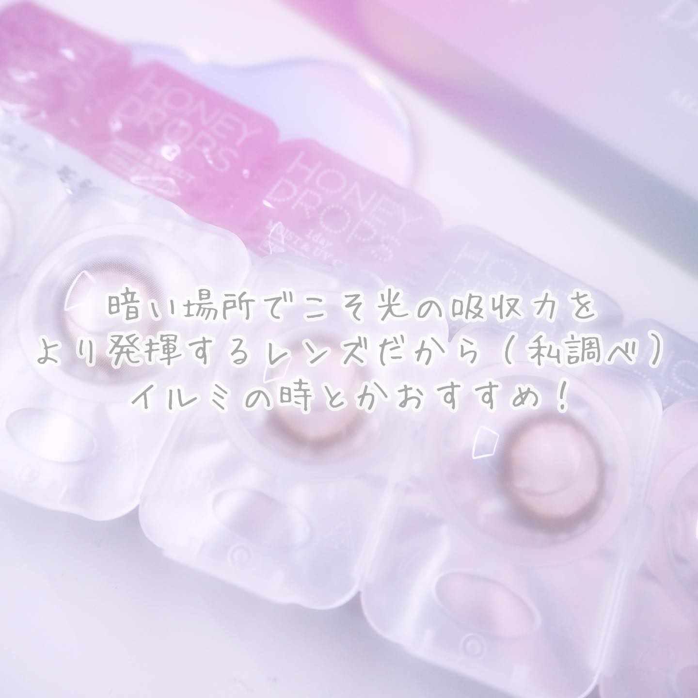 【使った商品】HONEYDROPS1day15.0mmBabyBeige(ベビーベージュ)10枚入【商品の特徴】DIA:15.0mm着色外径:14.6mmBC:8.7mm含水率:38.0%【使用感】含水率は低めだけど目が乾くこともなく快適💧【...