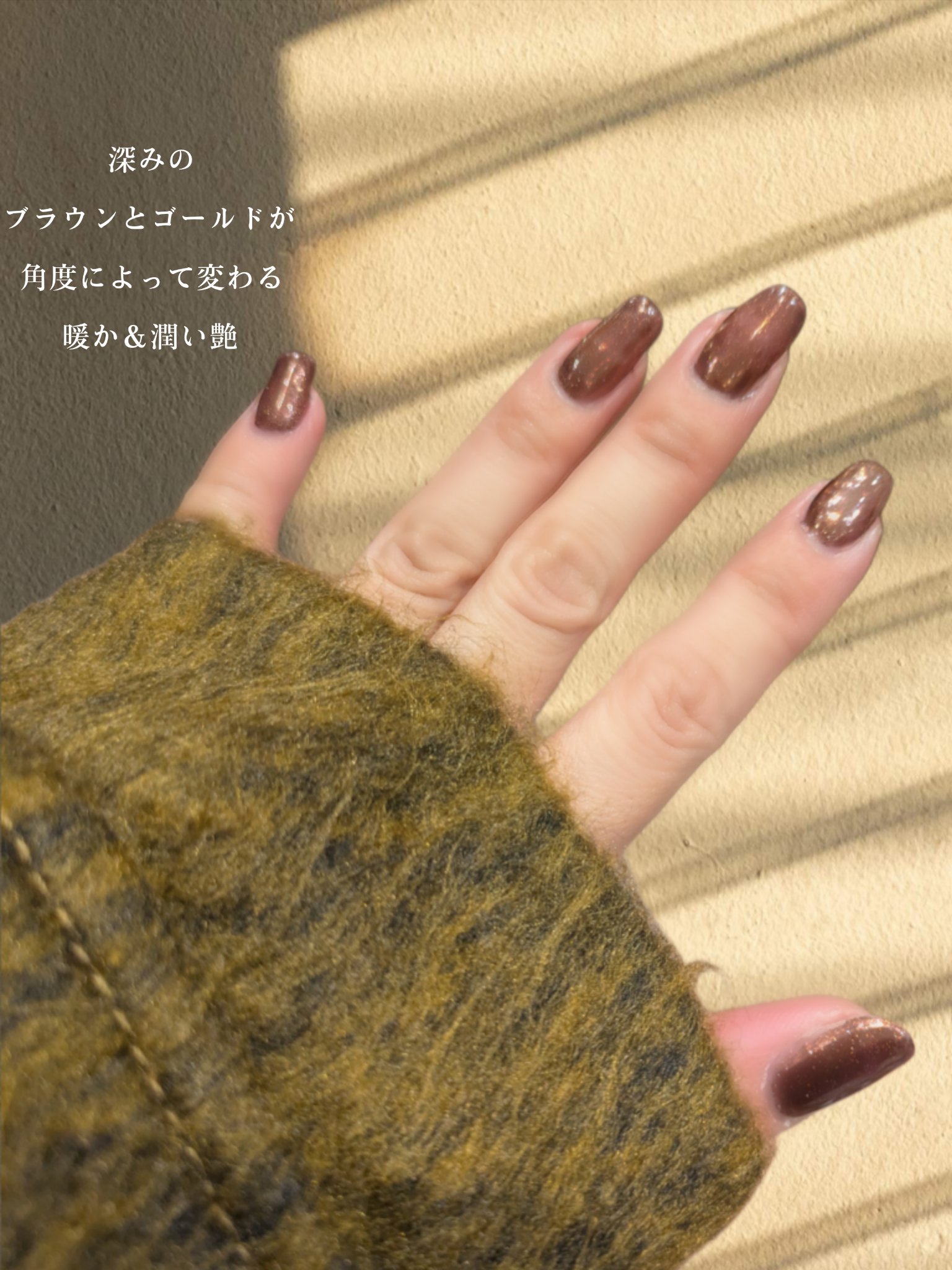 手持ちジェルネイルの中でも一番好き。ぎゅんぎゅん動く超微粒子のラメが追いつかないほどで、くすみのあるカラーバリエーションも今の気分にマッチするマグネットジェル。今回はぎゅんぎゅん動いてる動画をアップしてみたけど急遽ひとりで撮ってるのでピントが合ってなくてごめん🥹マグネット初心者さんでもテクいらずで自由自在にラメを動かせるから楽しくなっちゃうこと間違いなし。なんならラメ動かしてる時遊んでるくらいの気持ち。注意点としては、結構こってりなのでブラシの量を調整すること、5本全部に塗ってから動かすと1本動かすたびに全部の指のラメが動いてしまうので1本1本硬化してから塗るのが正解♡私みたいなズボラ性格でもこんなに可愛いネイルになるから、今すぐ試してみてね♡コスパも神ってる🥹PetitPriceinbityシルクマグネットジェル