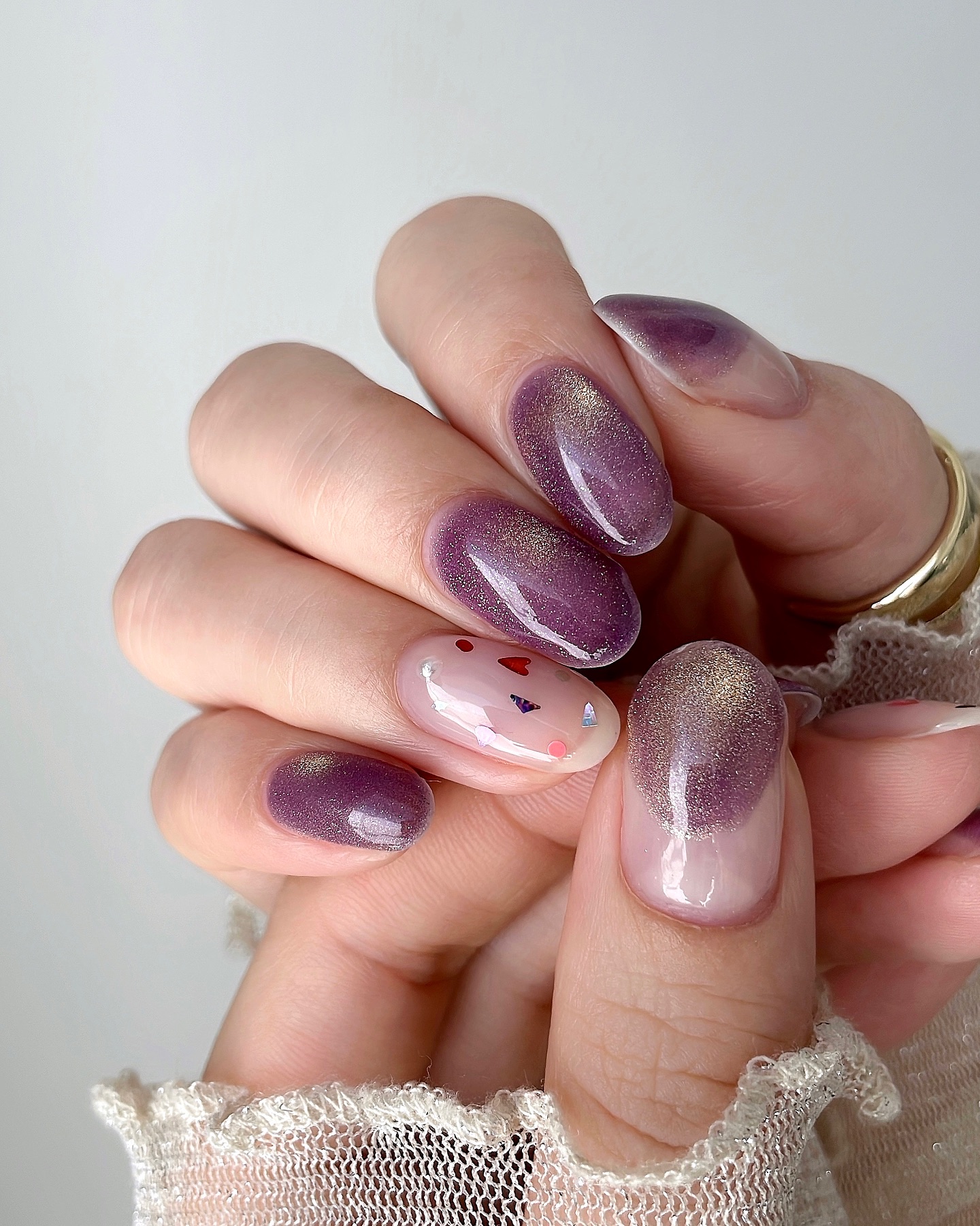 マグネットは動きやすいし、パープルに繊細ゴールドラメが上品で驚きました>_< ♡ セルフネイラーさんは是非チェックしてください!! 自宅でサロンクオリティに近付けます😳🩷