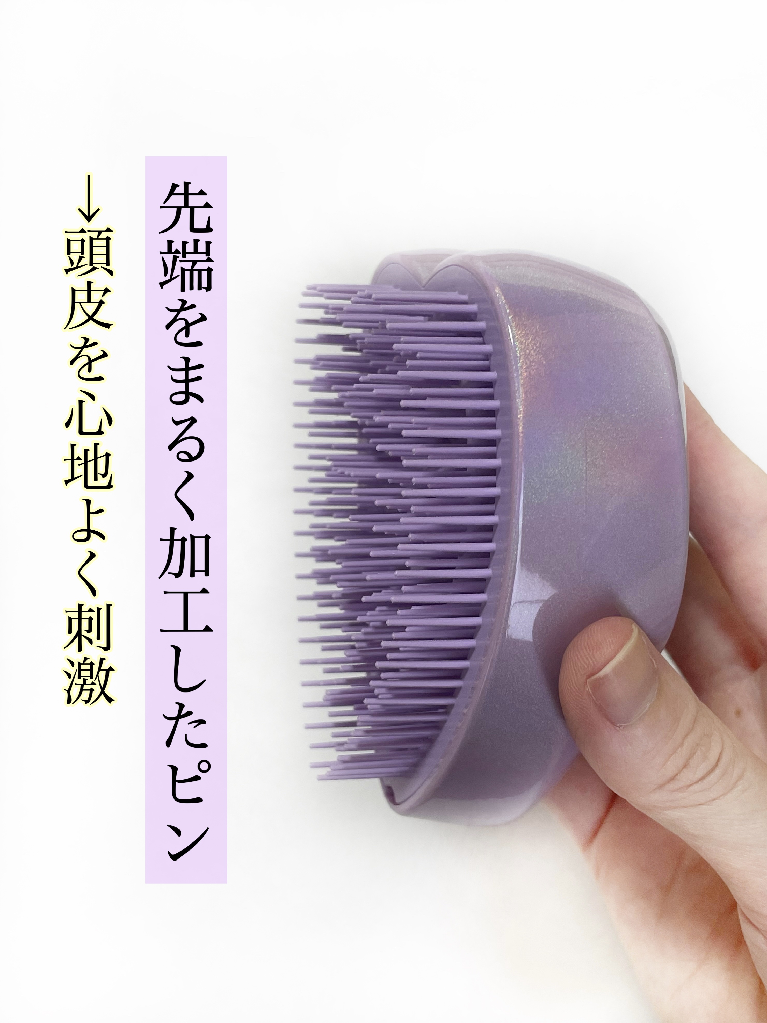 一目惚れ必須なパステルパープル💜 しかも傾ける度レインボーにキラキラする🌈 タングルティーザーより髪の毛をより多くキャッチしてくれて、毛量多めさんはReFaがおすすめ。