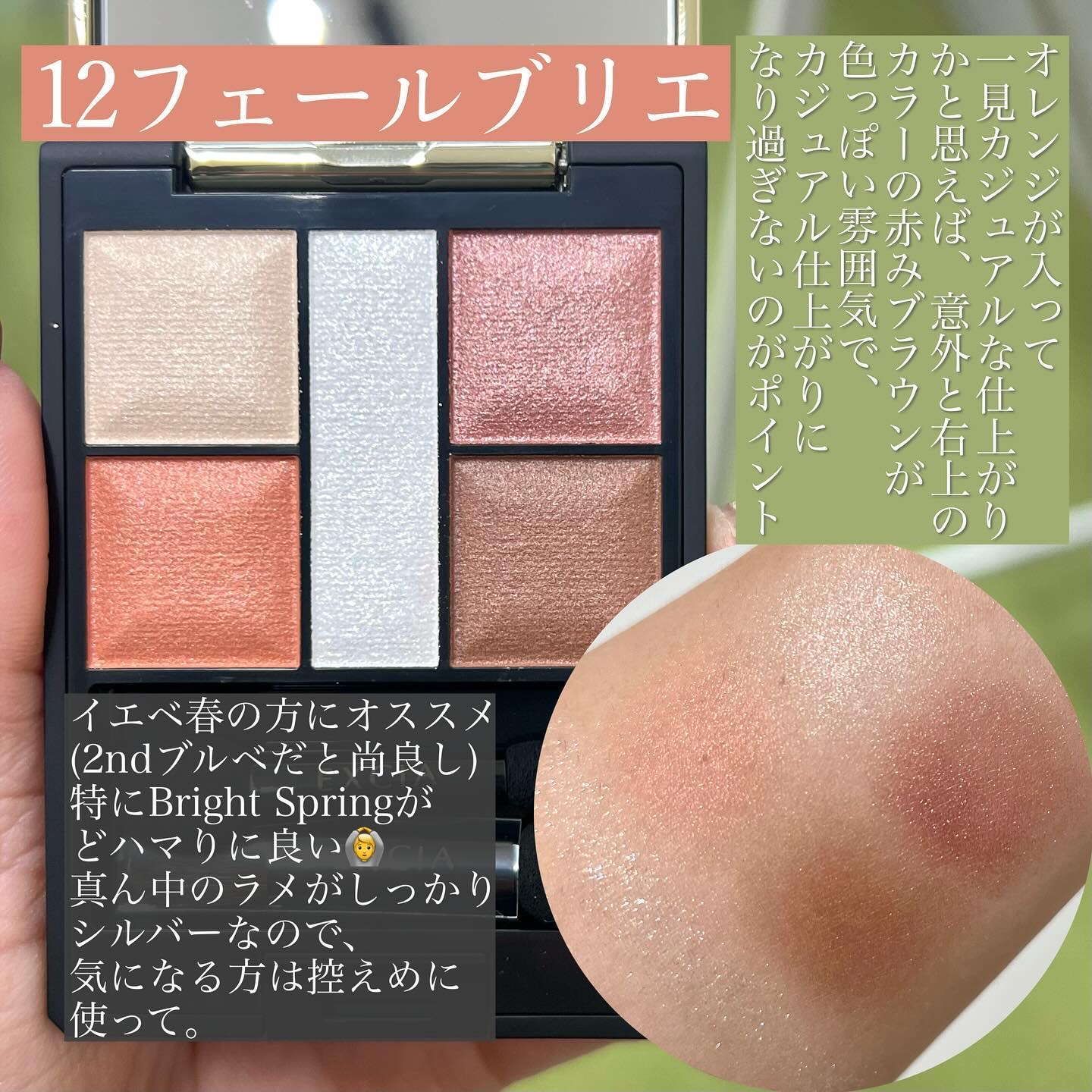 この滲むようなじゅんわり発色は他のデパコスでもあまり見たことがない! しっとりとした質感で、まぶたのしわや粉飛び気になる方は絶対感動すると思う🥹✨ 新色は本当に春らしくて可愛いのでぜひエクシア、見てみてねー!💐