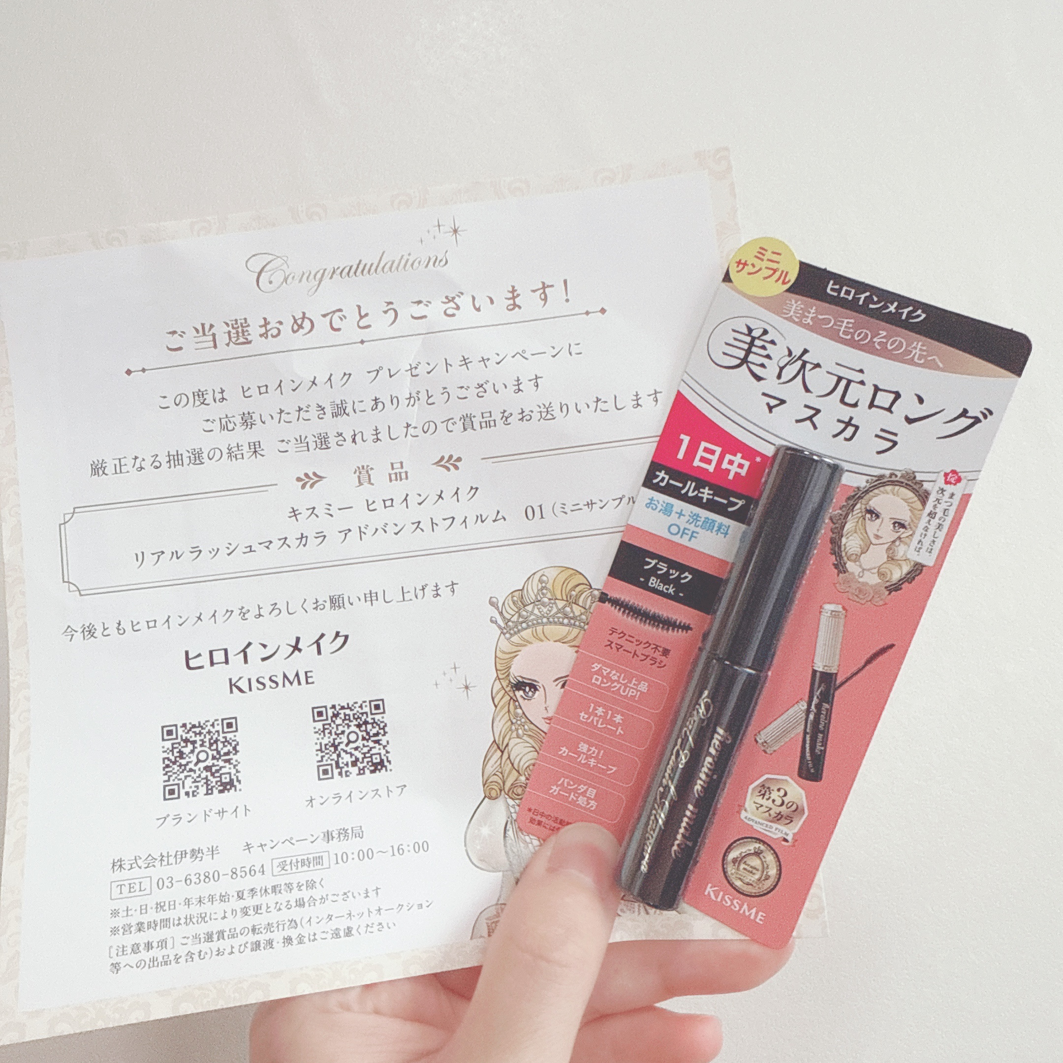 #gifted#ヒロインメイクKISSME(キスミー)公式LINEのプレゼントキャンペーンにて当選しヒロインメイク様からいただきました!🖤ヒロインメイクリアルラッシュマスカラ🖤アドバンストフィルム01ブラック(ミニサンプル)ほどよい液付きでツ...