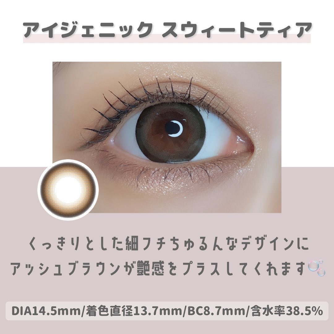 フチありなのでナチュラル感はありませんがデカ目効果はあります🙆♀️ フチありで着色直径も少し大きめなのできゅるんとした瞳になり可愛い印象の瞳になります👀 私の瞳には少し大きく感じたので可愛いけどリピなしです( ・~・`)