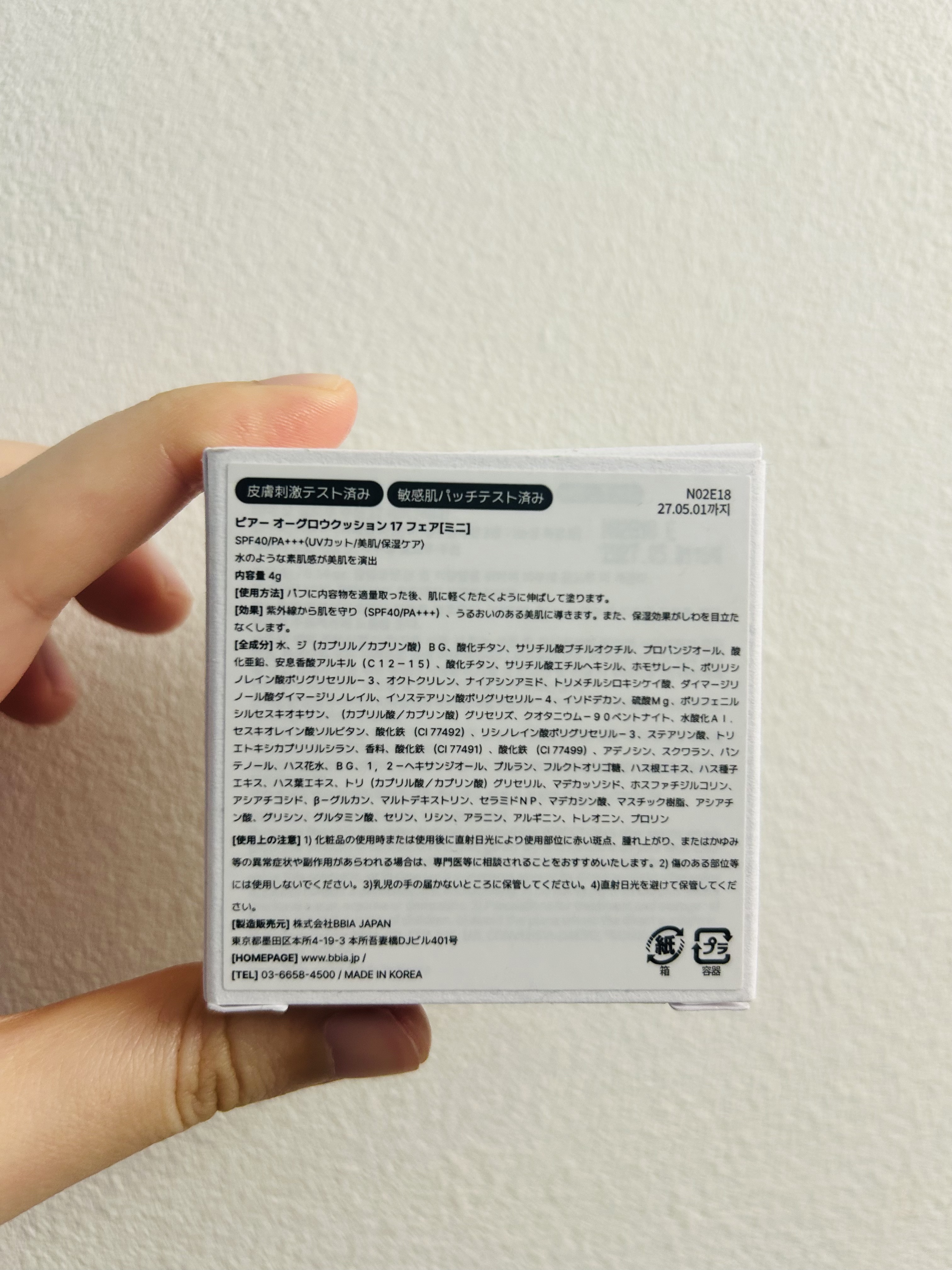 クッションファンデは17号ピンクベージュでも黄みのある色合い。 コンシーラーはワントーン下げて21号にしたのですが、やはり黄みが強めかな?という感じなので17号でもよかったかも🤔 クッションファンデは韓国で機能性化粧品に分類されており、紫外線の遮断・美白・シワ改善に役立つ製品に該当。