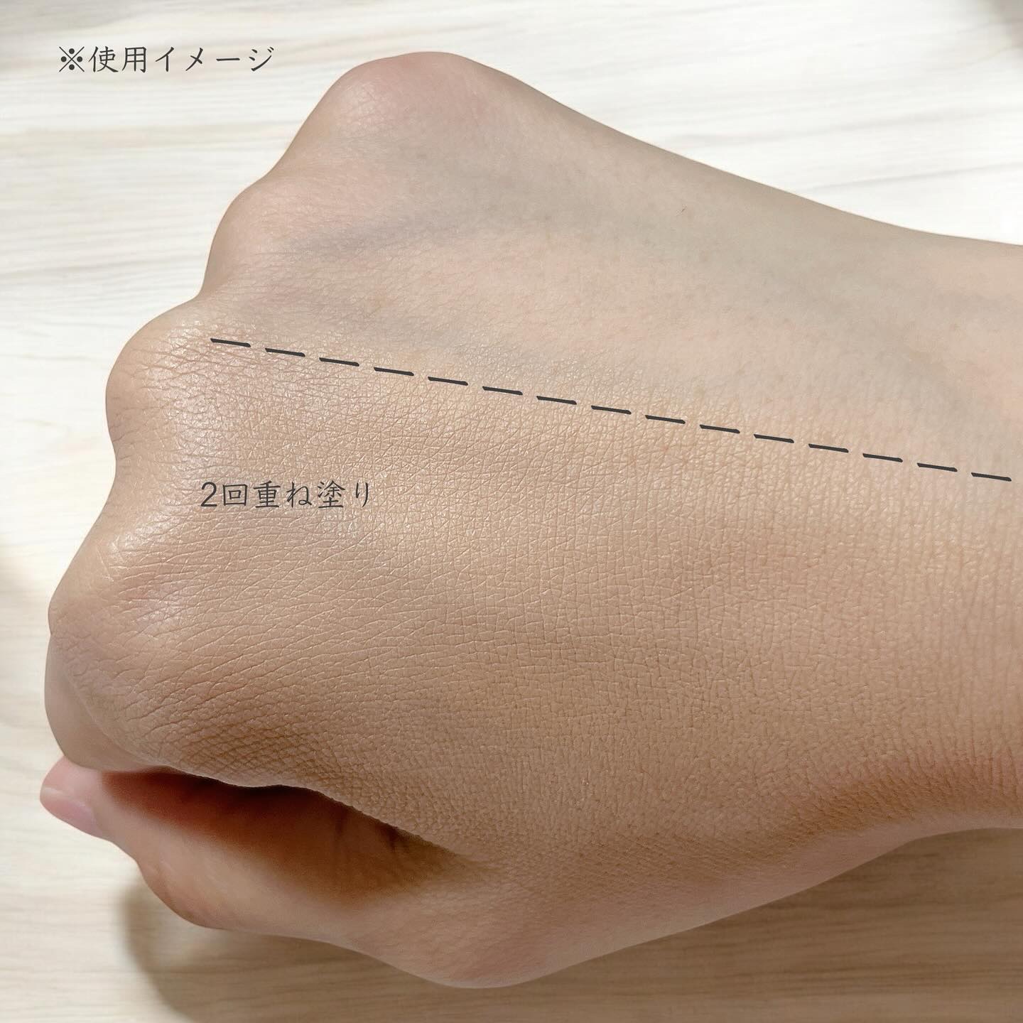 カラーは①のオークルを使用しました。ちょっと私には暗いですね😭 塗った直後は少しマットかな?と思うのですが、しばらくすると内側からツヤッとしてくる感じがします。