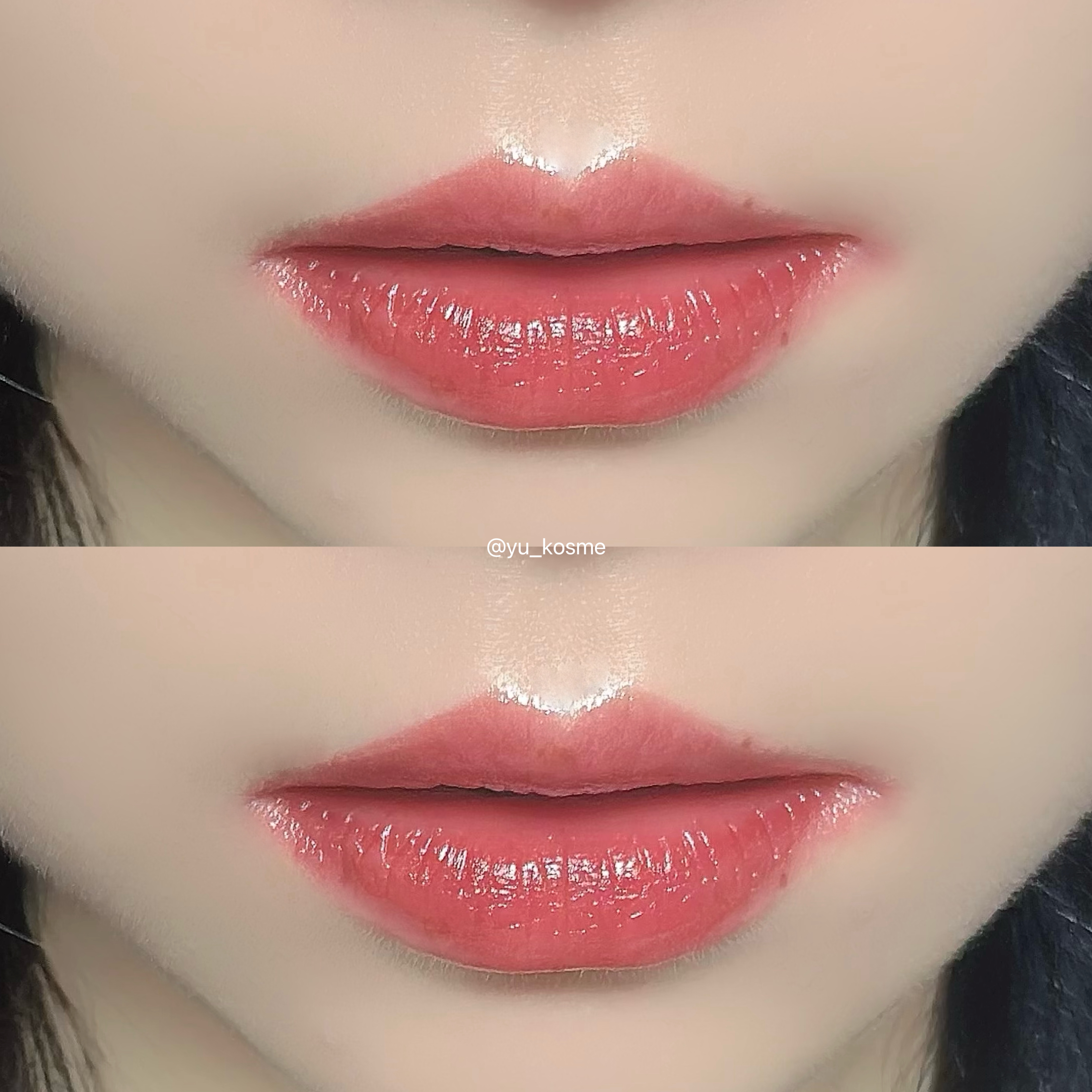 すっごく薄膜でベタつかないけど むっちりジューシーな仕上がり😍 ブルベ冬の中でもダークな色が得意な私的には 正直これ1本だと物足りなさもあるけど、 これだけで仕上げるというよりは仕込みとして リップラインをオーバーめに塗って 「素の唇の色がこれです」って顔するのに◎ ムラなく染み込んでいく感覚だけど ケア成分のおかげなのか私は唇荒れないし 色もツヤも長持ちするから毎日大活躍です🫶