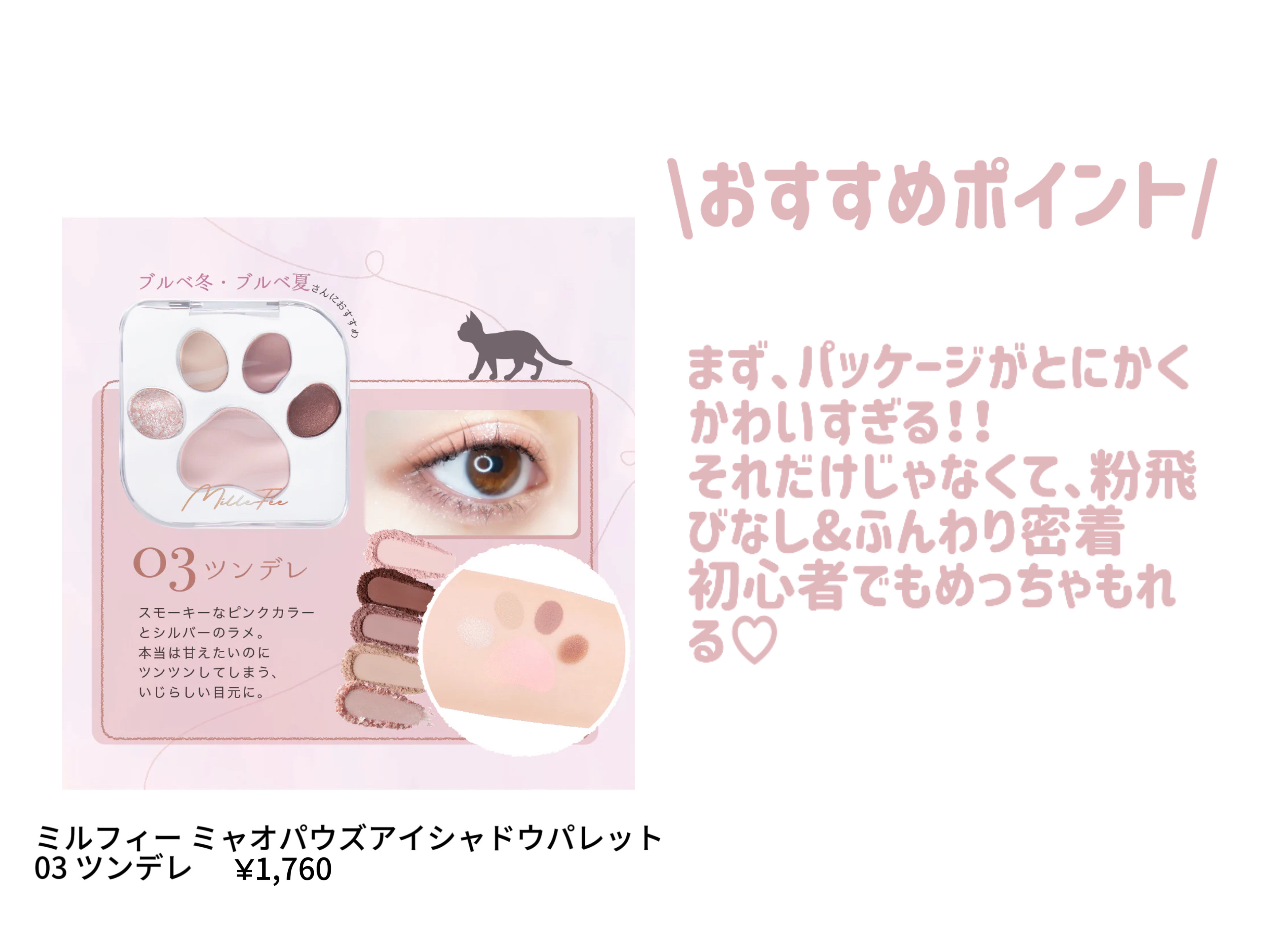 関連する記事MilleFée(ミルフィー) ミャオパウズアイシャドウパレット 03 ツンデレ