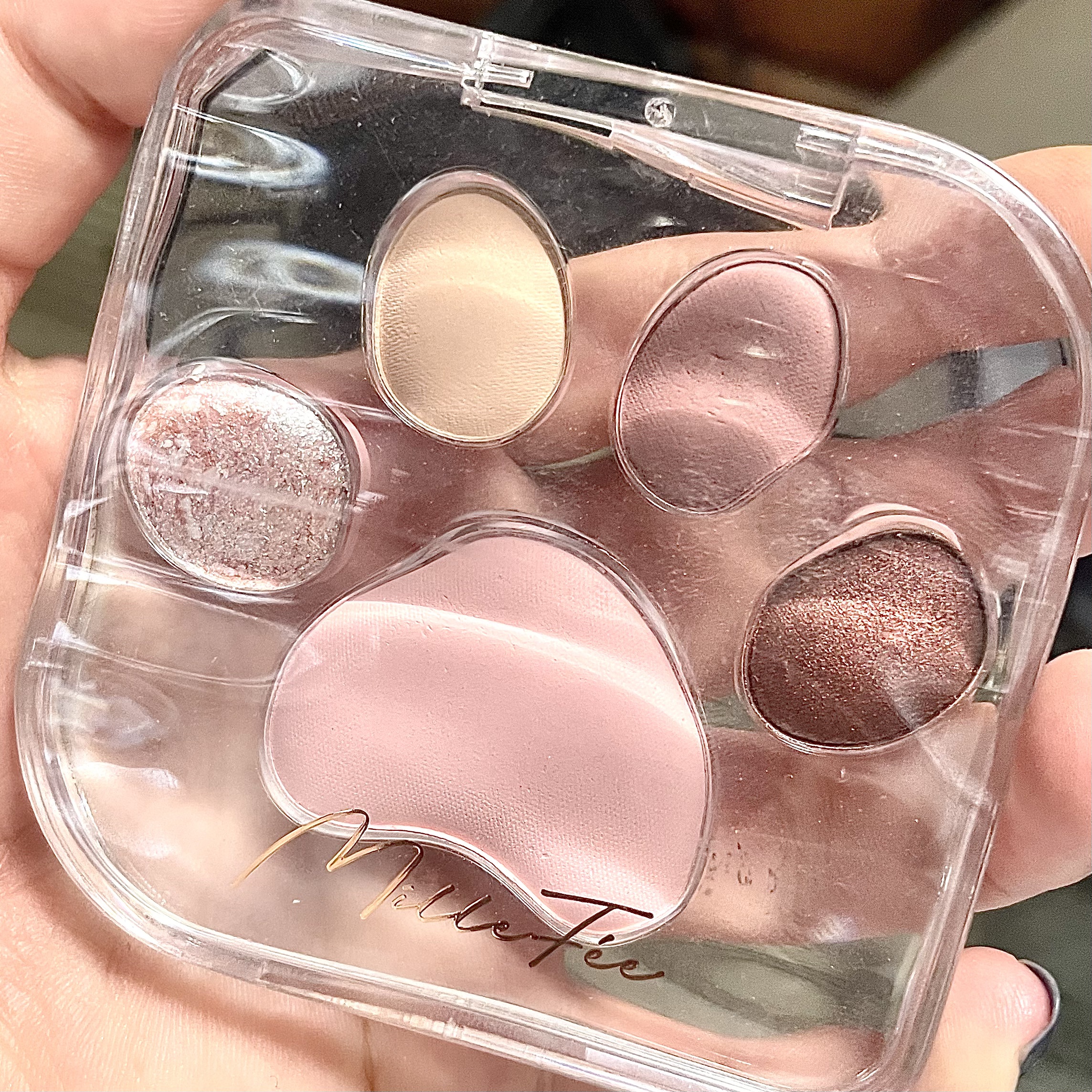 可愛すぎて思わずポチったアイシャドウ🐱 肉球パレット🐾 スケルトンパケに肉球型に配置されたシャドウって…可愛すぎる…😍 粉質はやや硬め。まぁシャドウが立体的になってるから、どうしても硬くせざるを得ないのかもしれませんが💦 淡いカラーとやや濃いめのカラーが入ってて、まさに“ツンデレ”って感じのするパレットです🩷