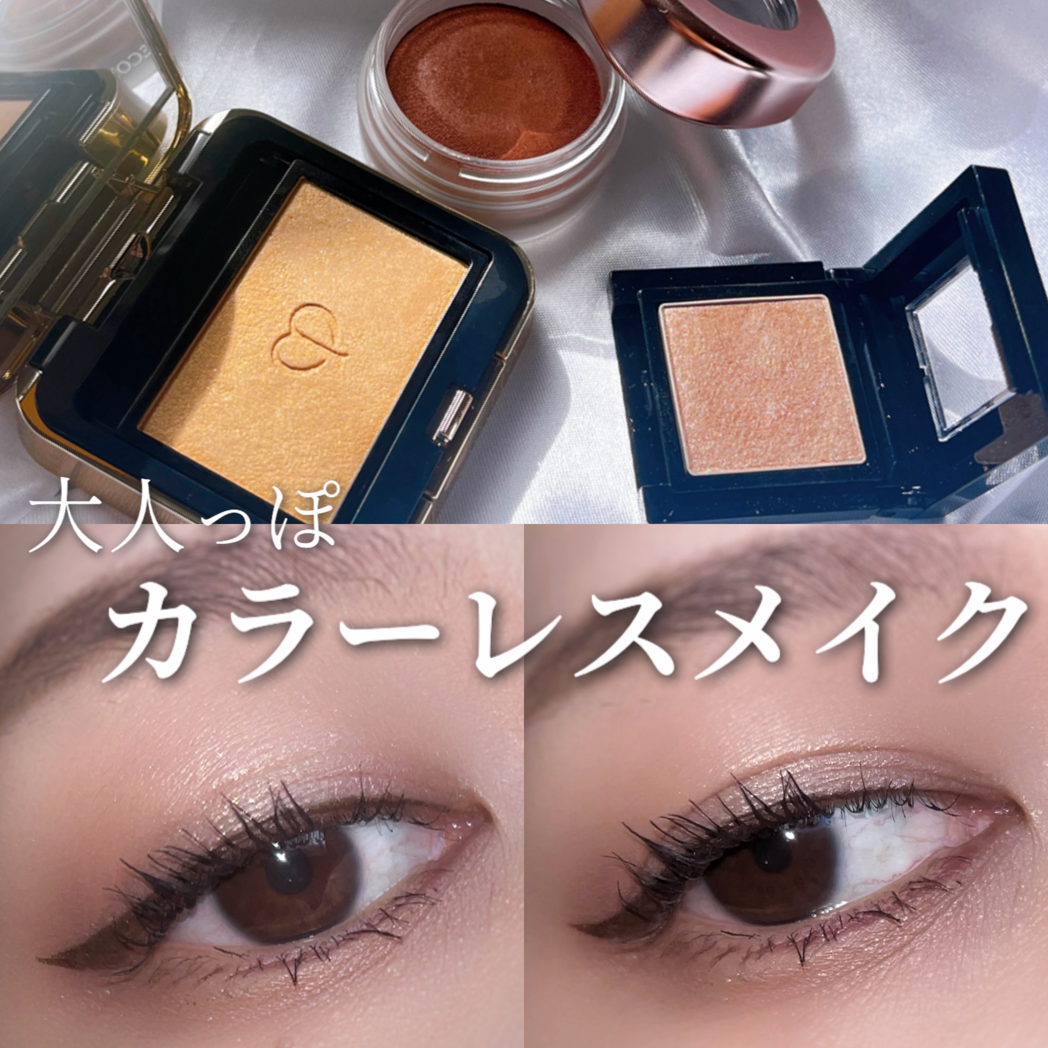 クレドのアイシャドウは初めて使うけど粉質にびっくり🫢 クリームと粉の間くらい…?しっとりサラサラ 2つともゴールドラメ入りで美しい輝き✨ 発色淡めだからベースで使う予定 ナチュラルメイク好きな方はこのままでいけそう個人的にはアイメイクはもう少し遊びたいので濃い色とかラメを追加でのせたくなっちゃう🥺