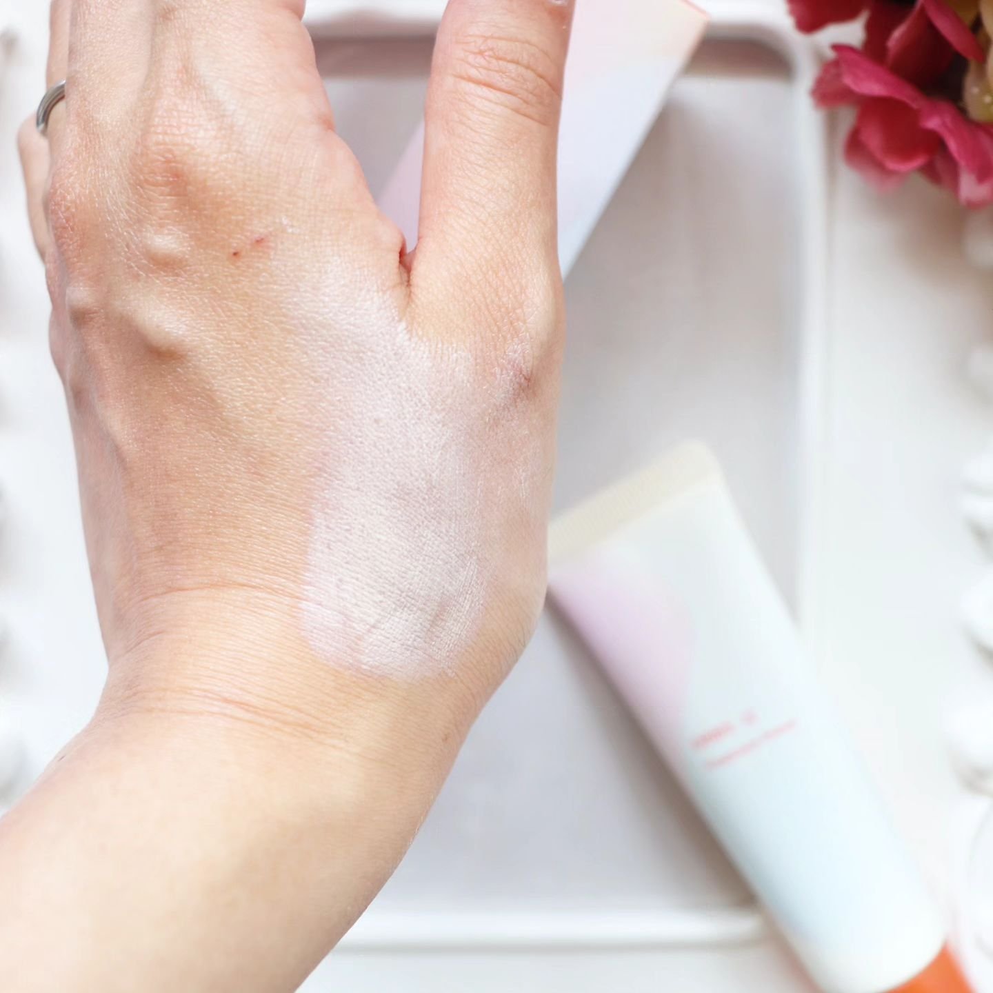 このプライマーはくすむどころか きれいに補正してくれて大満足👏✨ 定番色は血色感を補うピンクベージュで こちらはトーンを補正してくれる感じ♡ SPF50・PA+++と紫外線対策にもぴったりで、 ブルーライトカット成分も入っているところもいい!