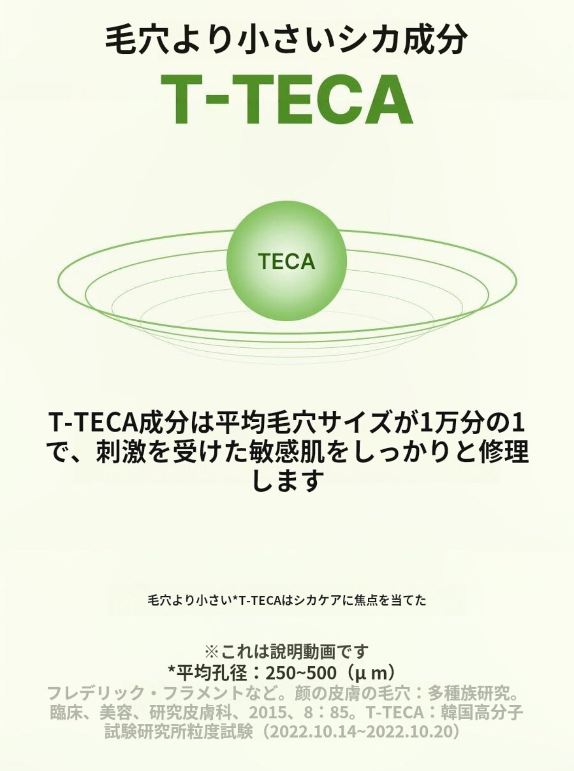 - 水、BG、グリセリン、DPG、1,2-ヘキサンジオール、ツボクサエキス、マデカシン酸、アシアチコシド、アシアチン酸、マデカッソシド、パンテノール、アラントイン、センブリエキス、ニンファエアコエルレア花エキス、乳酸菌発酵液、タチアオイ花エキス、加水分解ヒアルロン酸、ジペプチドー2、グリチルリチン酸2K、プロパンジオール、イソペンチルジオール、(アクリル酸グリセリル/アクリル酸)コポリマー、オレイン酸ポリグリセリルー4、ステアロイルグルタミン酸NA、(メチルビニルエーテル/マレイン酸)コポリマー、サーファクチンNA、カルボマー、キサンタンガム、トロメタミン、メリアアザジラクタ葉エキス、メリアアザジラクタ花エキス、EDTA-2NA、エチルヘキシルグリセリン