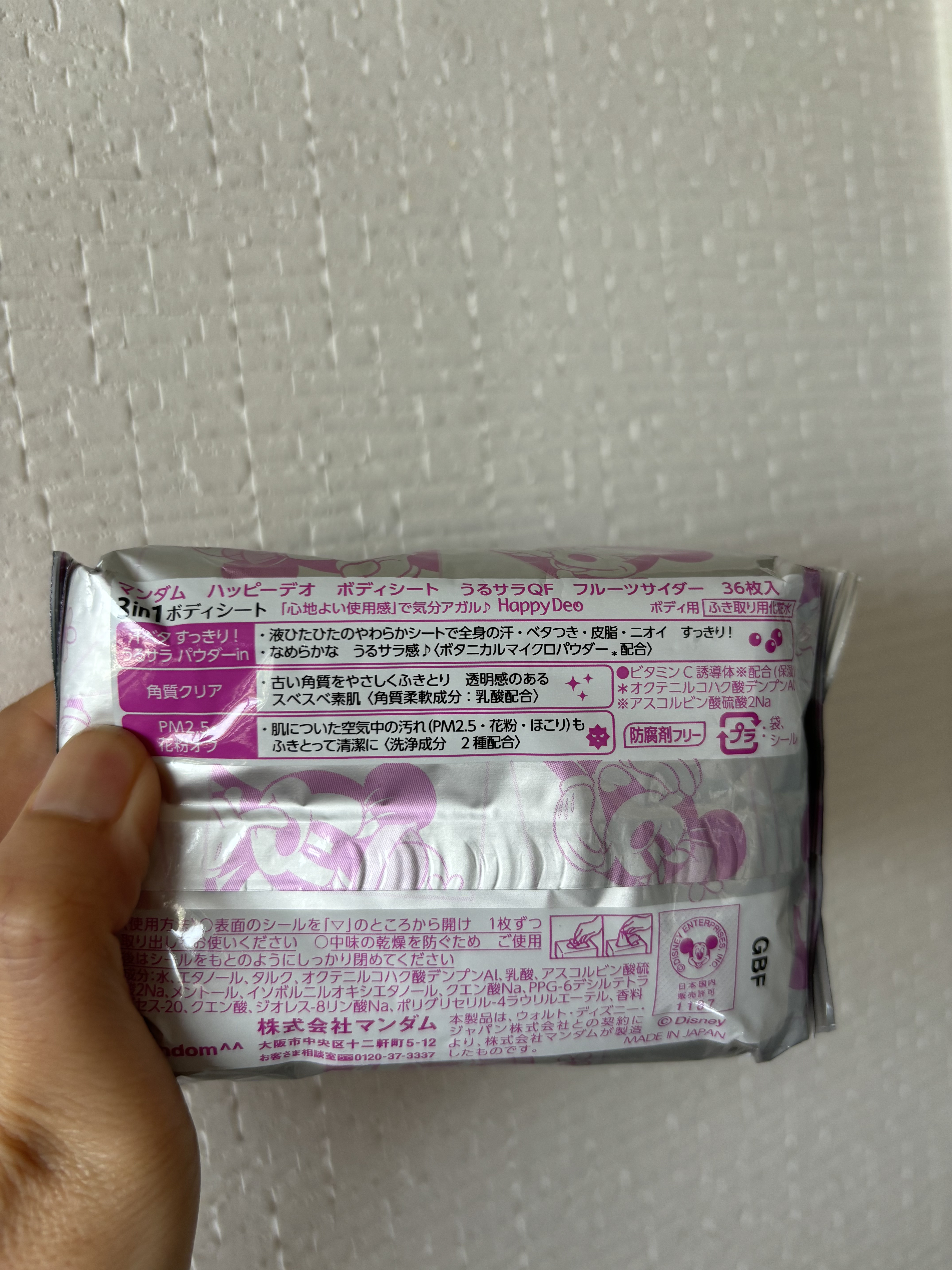 お出かけ中もうるさらボディー🫧最近暑くなってきたので持ち歩き用に新しく買いました👜ミニーちゃんのパケが可愛いので開けずに撮影📸🫧マンダムハッピーデオボディシートうるサラ花せっけん🫧ドラストで300円ぐらいで買いました柔らかい女の子らしい匂いがします🌸🎀トイレとかでササッと拭けるので使いやすいです🚻背中ニキビの対策にも✨️#マンダム#ボディシート#ボディケア#汗ふきシート#汗ふき#汗かき#バッグの中身#ポーチの中身#ゆらぎ肌のスキンケア#私のご自愛ルーティン#背中ニキビ