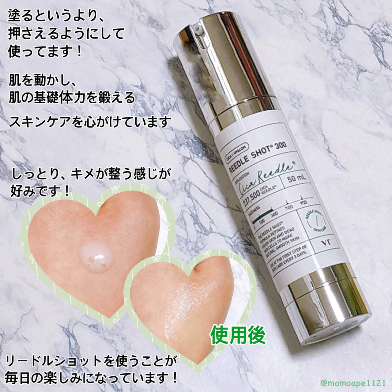 ずーーっと使ってるVTのリードルショット300👏これに関しては、私の中で使わない理由を見つけるほうが難しい…てくらいお気に入りです❣️リードルショット300を使った時と、使ってない時で化粧水の浸透が本当に全く違う😆リードルショットを使った時は...