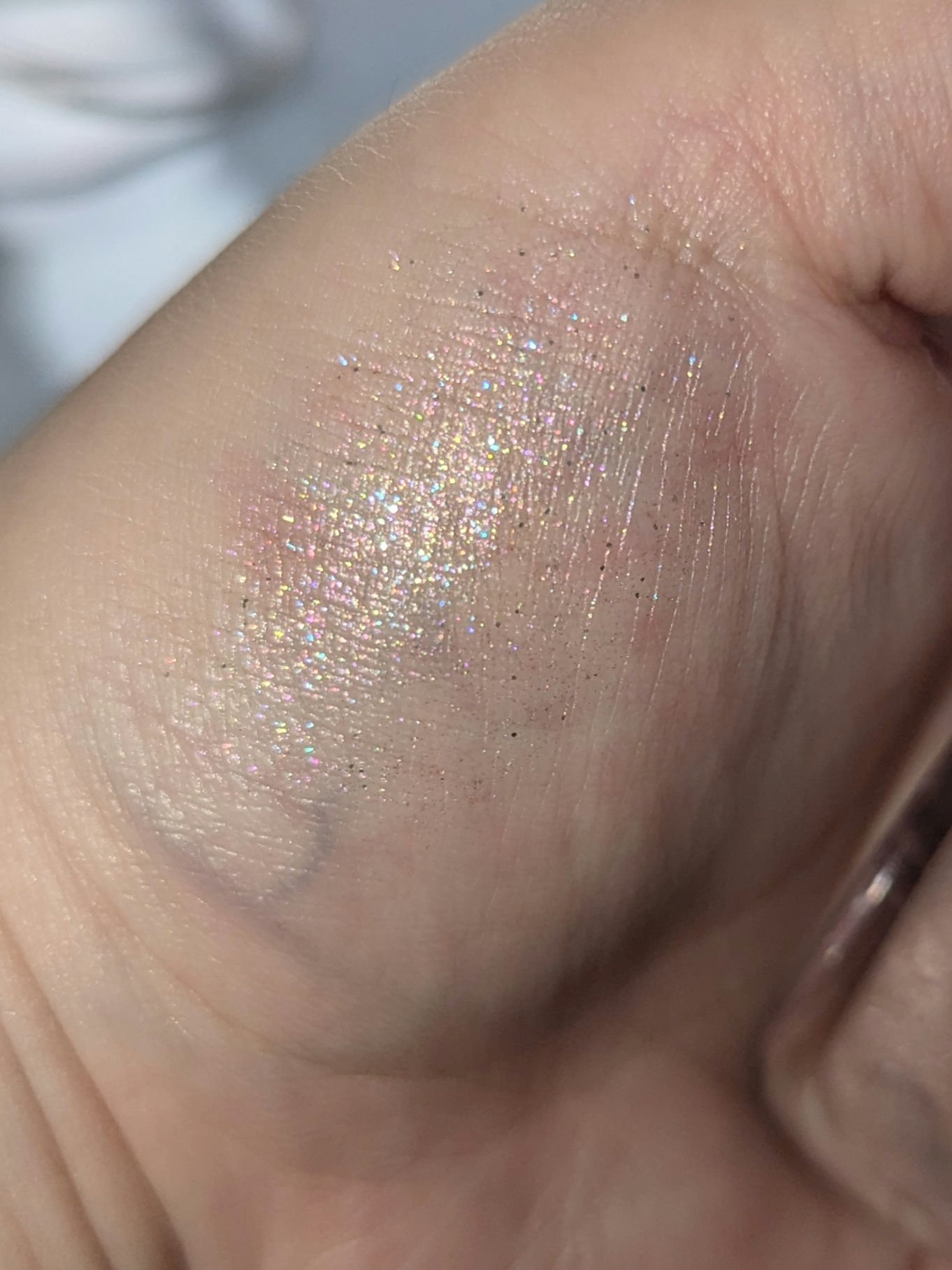 密着力も乾きも早いのでラメがポロポロ落ちてこない! しかもかなりキラキラなので上まぶたにちょんと塗るとめちゃくちゃ綺麗で… ラメがとにかく丁度よい大きさで下品にならないけどグリッターとわかるキラキラさに感動しました。 サクラピンクはシルバー、ピンク、ブルーのラメが入っていてブルベさん向きな輝きではある。