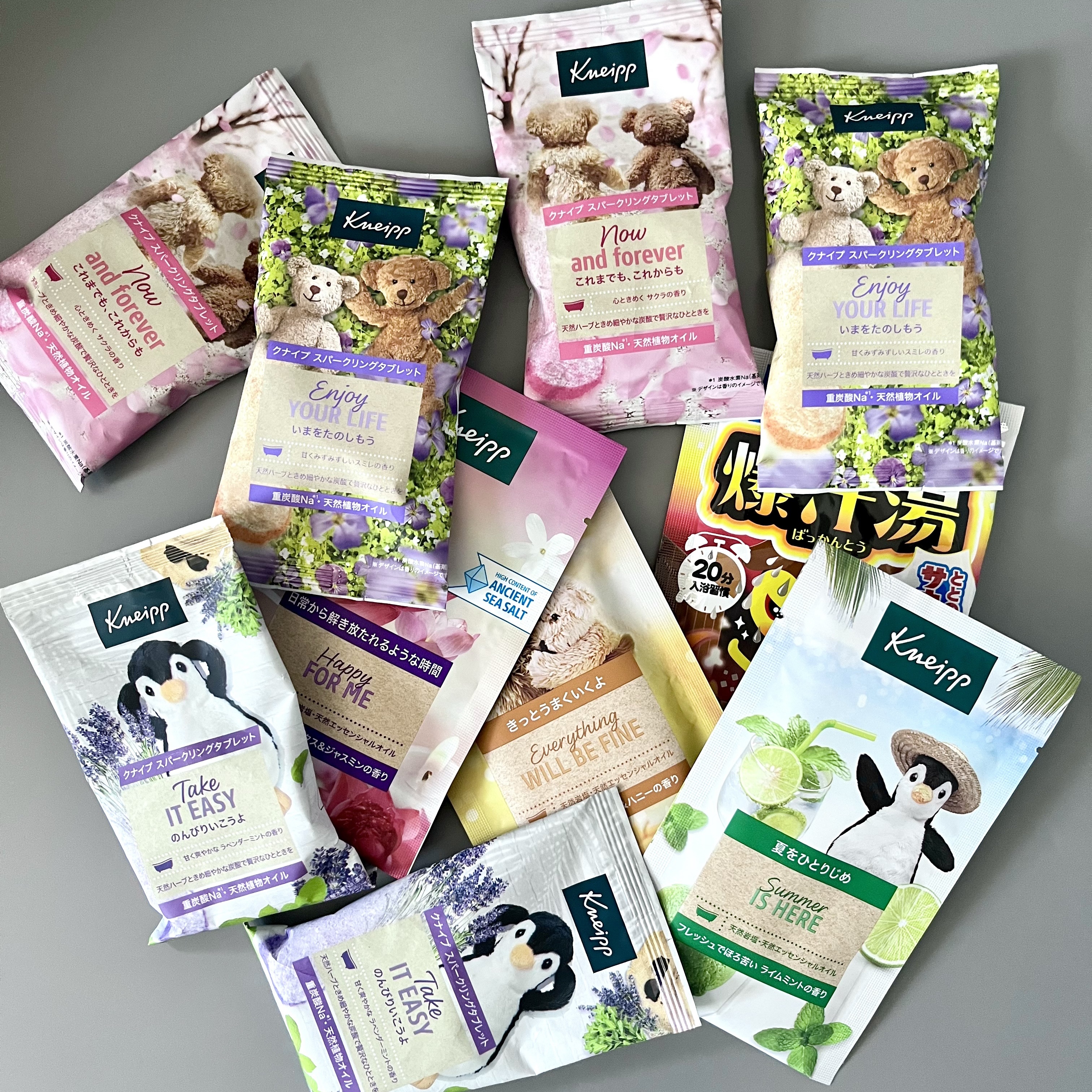 暑い日が続きますね… 美容のためにも暑い日でも短くても 湯船に浸かるようにしています。 お気に入りの入浴剤、クナイプ。 バスソルトが有名ですが タブレット型もたくさん種類があるんです! 集めて今は7種類みつけました♪ 季節限定の香りもあるから...