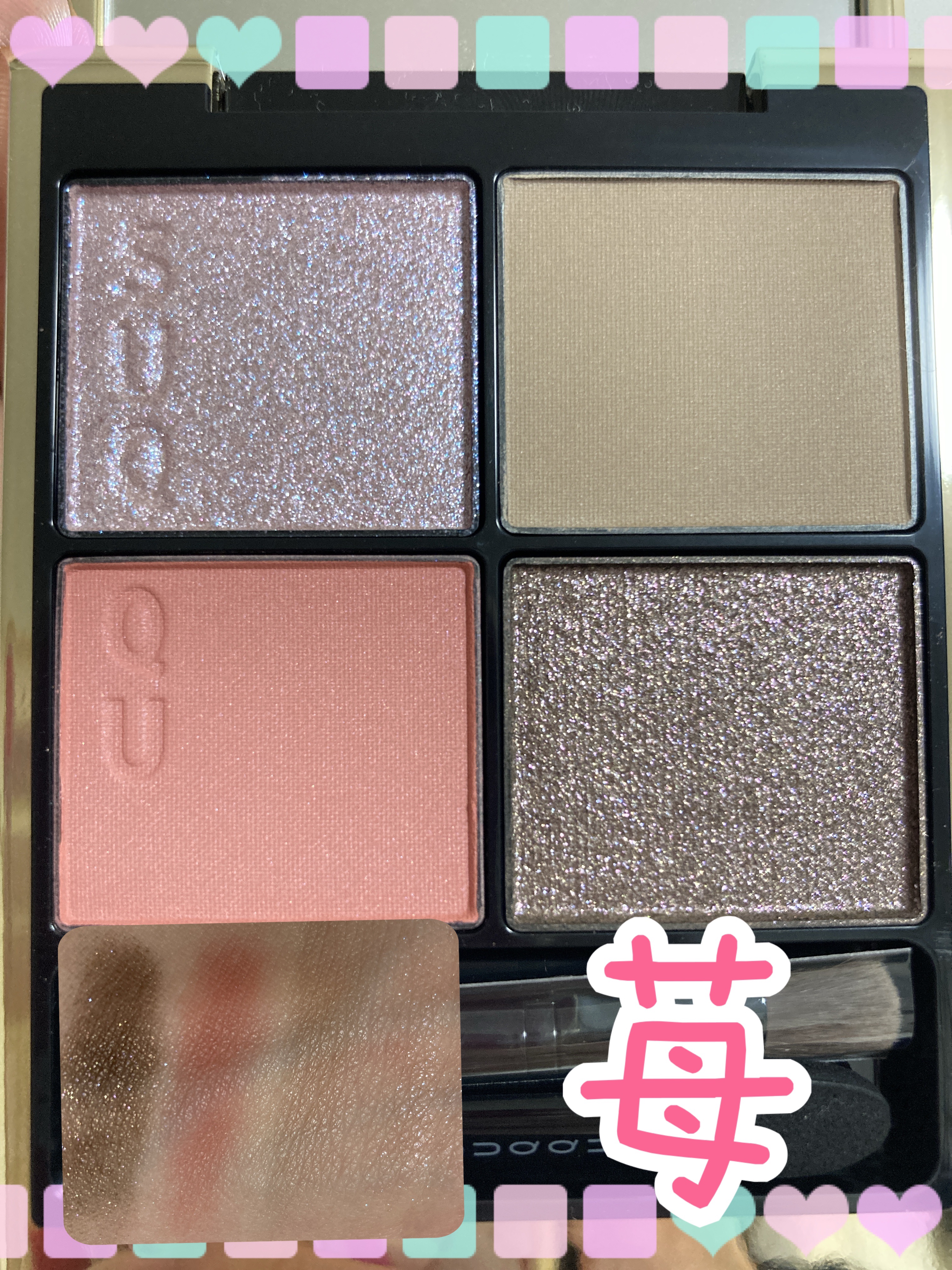 🐈⬛SUQQUシグニチャーカラーアイズ138涼苺-RYOUICHIGO🐾パッと見可愛いピンクだけど使ってみるとたぶん右上の謎カラーが作用するのか大人なピンクに。①右上アイホール②左下アイホール²/₃③右下二重幅目尻濃いめ、下まぶた目の際④左...