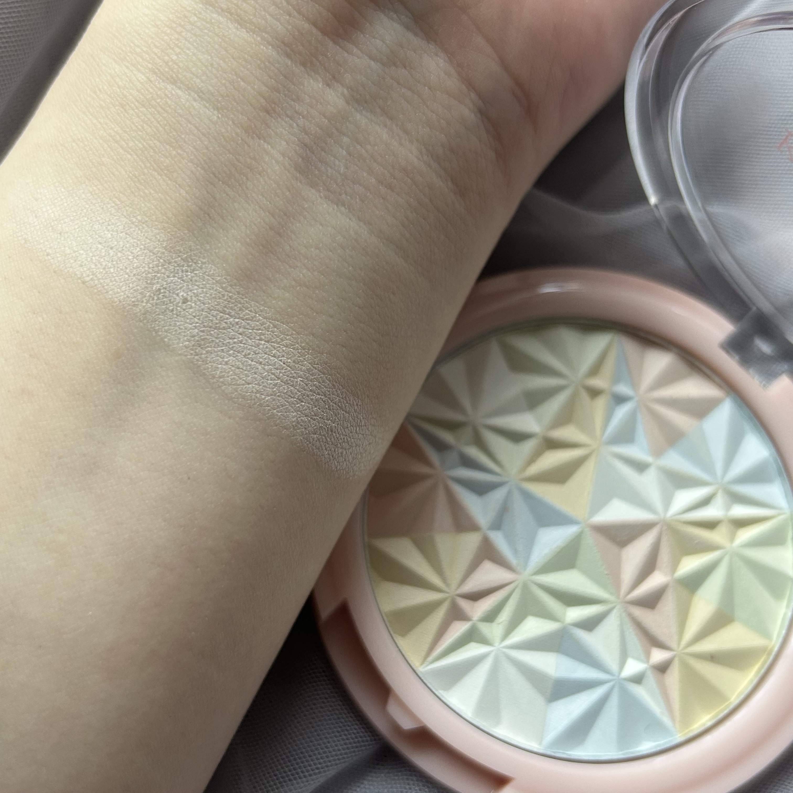 手持ちのブラシやパフで5色を混ぜてから肌にのせると 粒子が細かくふわっとした軽いつけ心地のパウダーが 毛穴やニキビ跡などのカバー力はありませんが、 顔色補正効果&くすみを飛ばしてトーンアップし、 ツヤと透明感のある仕上がりにみせてくれました😌 美容成分5種(保湿成分)配合でメイクしながら美肌 ケア*2できるから乾燥しやすい今の時期にピッタリ◎ 汗・皮脂に強く、夕方までしっかり密着し メイク崩れ防止にもなるので夏にも大活躍しそう☀ プチプラで手に取りやすいし、 見た目も可愛いから気分上がる︎🤍