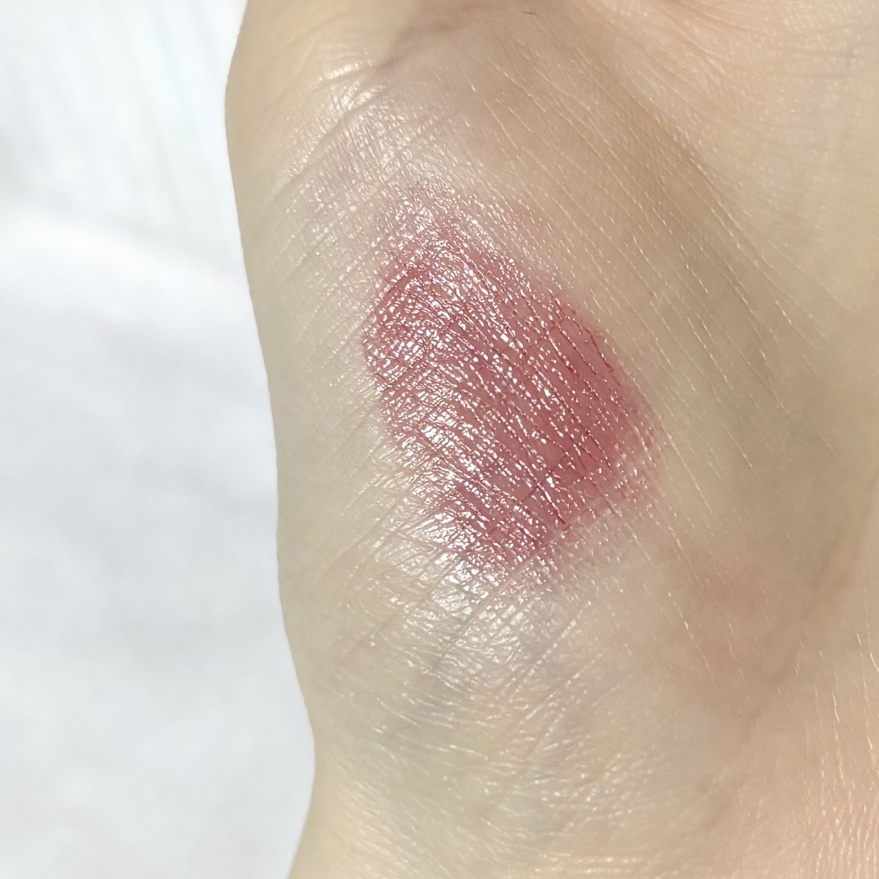透け感のある上品なツヤに色っぽさとピュア感が足されたところ✨ 触れるとまるでバームのようにトロける感じのテクスチャーです🫠 つけると透け感が際立って良い感じに血色感を与えてくれます☺️