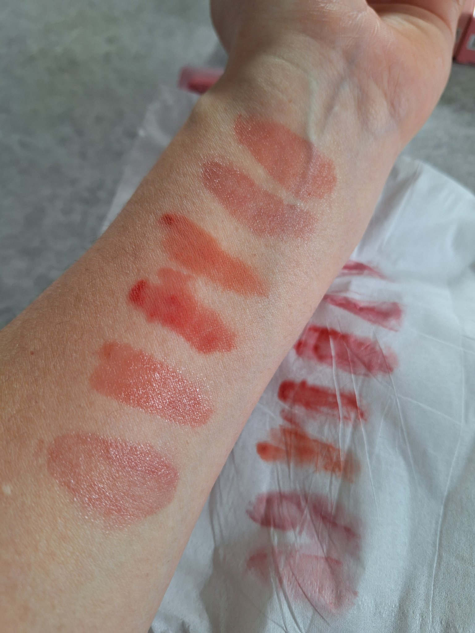 PERIPERAオーバーブラーティント04CORAL-LA-LA色味名前はコーラルだけど、唇に乗せると実際にはピンクに近い色になりでブルベ夏でも使えるような色です。テクスチャーインクベルベットと似ていて、ウォータリーな質感からマットに変わる感じ。インクベルベットの方はこってりしたテクスチャーで、オーバーブラーティントは薄く広くスルッと塗れるような感覚🤔色落ち部分的に落ちる。インクベルベットの方が持続力がある。個人的に色味は流石のペリペラという感じの綺麗な色だけど、色持ちや塗り心地は微妙だと感じました。