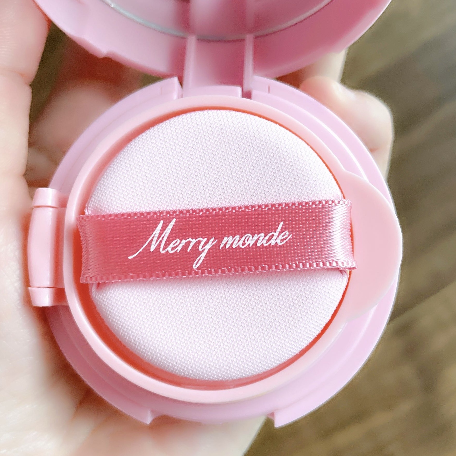 可愛いすぎて、飾っておくのも眺めるのも楽しいメリーモンドのコスメ。 みずみずしいテクスチャーのクッションファンデーションで、さっとなじませることが出来ます。 ヒノキ50,000ppmとビーガン成分でクリーンビューティー低刺激クッション。