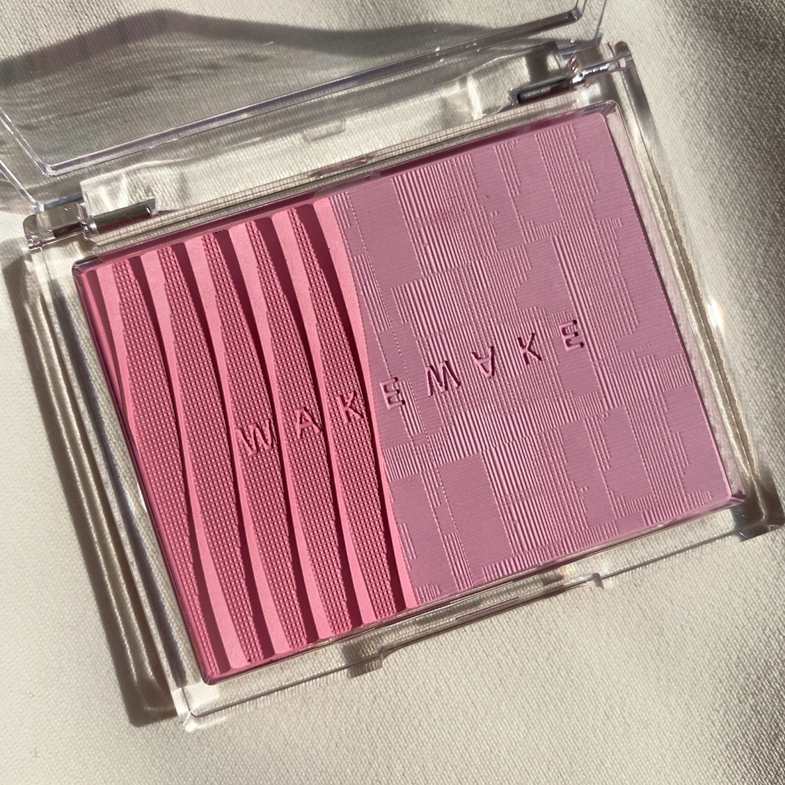 左側はいちごミルクみたいな柔らかなライトピンク、右側は白み・ラベンダーみのあるピンクで透明感を演出できるような色🫶🏻白み要素があるのでベースチークにも便利ですし、左側のいちごミルクカラーをしっかり使ってメイクの主役にするのも可愛い♡ 左側はマゼンダピンク、右側は白みのあるベビーピンク。マゼンダピンクは青みがしっかりあって最高👍🏻一見派手に見えますが、量の調節や2色を混ぜることで使いやすくなります〇 パウダータイプなのに粉っぽさが少なく、しっとりとした粉質で密着力も高いです。名前に“レイヤリング”とある通り、レイヤリングに最適な発色と粉質。重ねる回数によって好きな濃さが作りやすいのも良き👏🏻